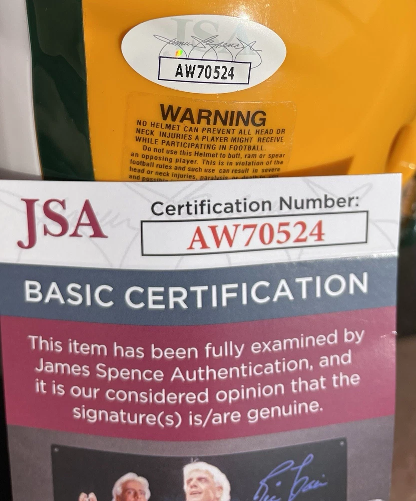 Sport:Football-NFLCountry/Region of Manufacture:JordanAutograph Authentication:James Spence Authentication (JSA)Team:Green Bay PackersFeatured Refinements:Signed Mini HelmetSigned:YesProduct:HelmetOriginal/Reprint:Original
