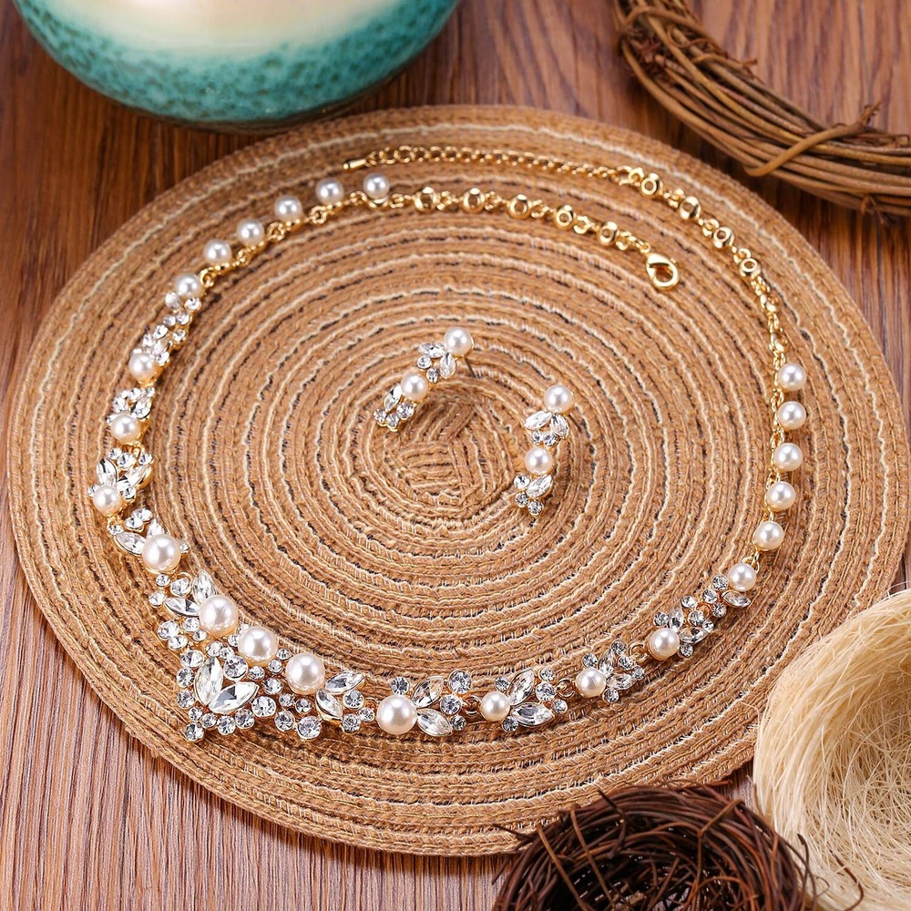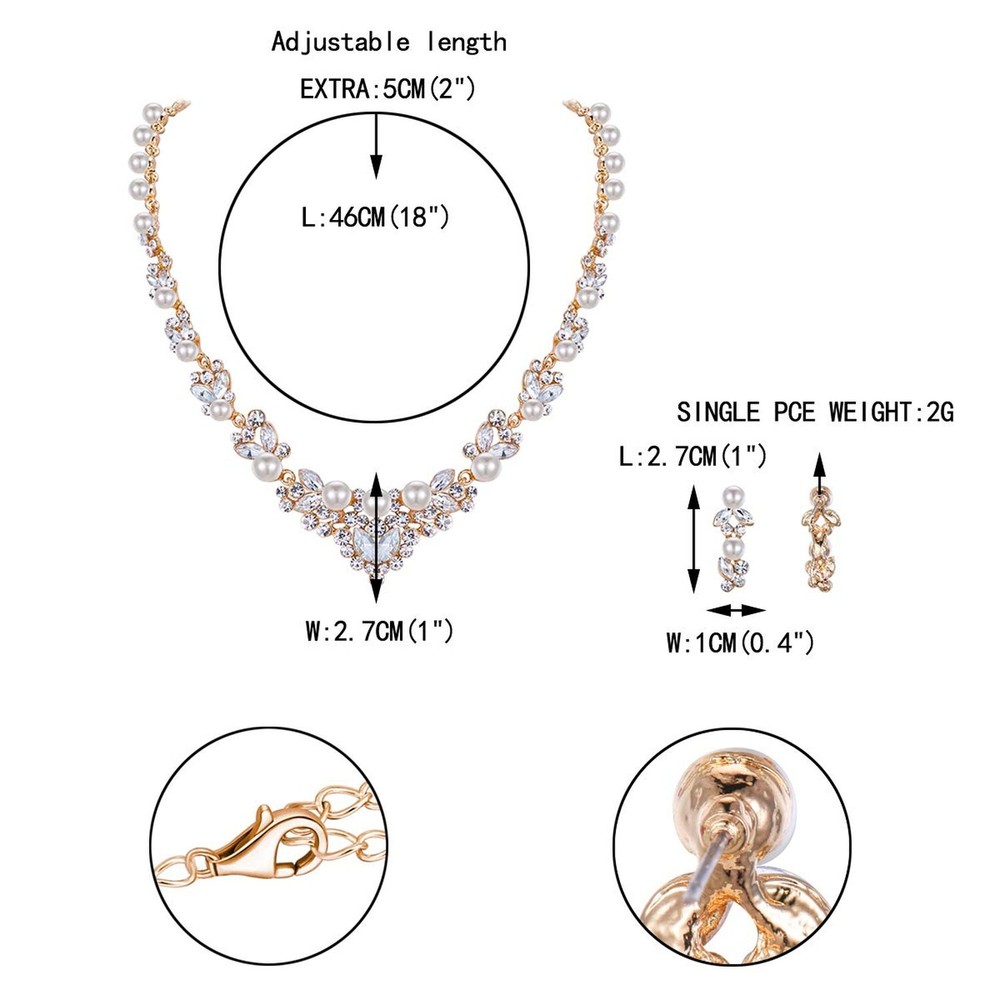 EVER FAITH Bridal Jewelry Set Clear Austrian Crystal Simulated Pearl Leaf Elegant Necklace Earrings for Bride, Bridesmaids Product Details Color: Cream Simulated Pearl Gold-Tone Brand: EVER FAITH MPN: N00476-3B UPC: Does not apply EAN: Does not apply Package Dimensions : 3 x 2 x 0.6 inches; 1.76 ounces Department : womens Date First Available : July 30, 2014 Manufacturer : EVER FAITH Brand, Seller, or Collection Name: EVER FAITH Metal stamp: Not stamped Metal: alloy Material: Crystal, Faux Pearl Gem Type: No Gemstone Chain: Curb Clasp: Lobster Clasp Model number: N00476-3B This stunning piece can be worn on its own as a statement and then combined with any jewelry accessory.