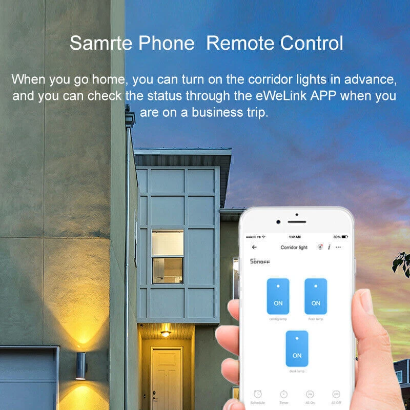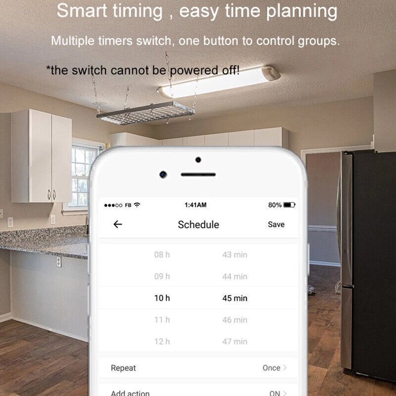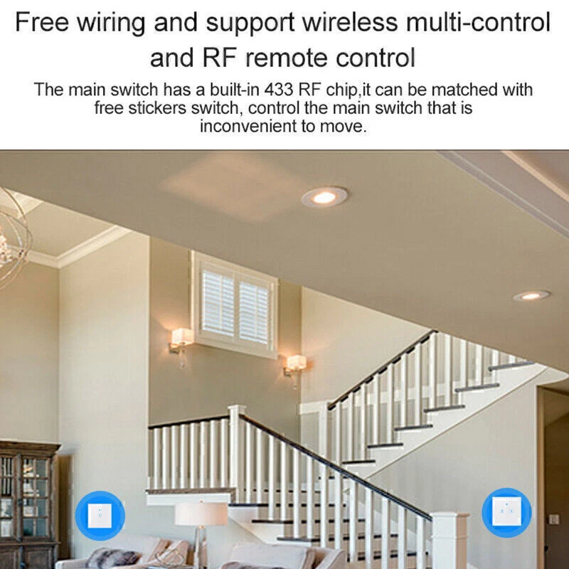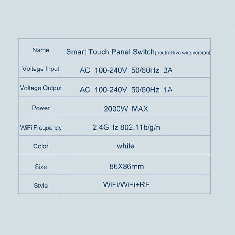 Product Description If you have any questions, please contact customer service first, do not open disputes easily, thank you! Note: This switch should be powered by the live and neutral lines. Some houses have wall switches that may not have a neutral line. Specification: WIFI: 2.4G (don't support 5G) RF433: Support Size: about 86*86*35mm Material: PC+Tempered glass panel LED load: 1 gang/ 2 gang:150W/110V(Per channel),300W/220V(Per channel) 3 gang: 60W/110V(Per channel),100W/220V(Per channel) 1 gang input: AC100-240V,50/60Hz, 2A 2 gang input: AC100-240V,50/60Hz, 4A 3 gang input: AC100-240V,50/60Hz, 3A 1 gang each output: AC100-240V,50/60Hz, 2A 2 gang each output: AC100-240V,50/60Hz, 2A 3 gang each output: AC100-240V,50/60Hz, 1A APP: eWeLink for Android & iOS Tips: How to connect with 433mhz remote control? Long press the button until you hear 1 beep, then press any key on the remote control, after hearing 1 beep, it will be learning successfully. How to clearing 433mhz remote control? Long press the button until you hear 2 beeps, then press the key you want to clear, after hearing 1 beep, clearing successfully Package list: 1* eWeLink EU Wifi Smart Light Switch Payment Shipping Contact Us We accept paypal payments and all payments authorized by eBay. 1.We ship to your eBay or Paypal address. Please make sure your eBay and Paypal address is correct before you pay. 2.Items will be shipped within 1-2 business day when we received payment. 3.Delivery time depends on destination and other factors We strive for 100% customer satisfaction! Postive Feedback is very important to us. If you have any questions, please feel free to contact us via "Ask seller a question" , we will reply your email within 24 Working hours. Payment We accept paypal payments and all payments authorized by eBay. Shipping 1.We ship to your eBay or Paypal address. Please make sure your eBay and Paypal address is correct before you pay. 2.Items will be shipped within 1-2 business day when we received payment. 3.Delivery time depends on destination and other factors Contact Us We strive for 100% customer satisfaction! Postive Feedback is very important to us. If you have any questions, please feel free to contact us via "Ask seller a question" , we will reply your email within 24 Working hours. powered by