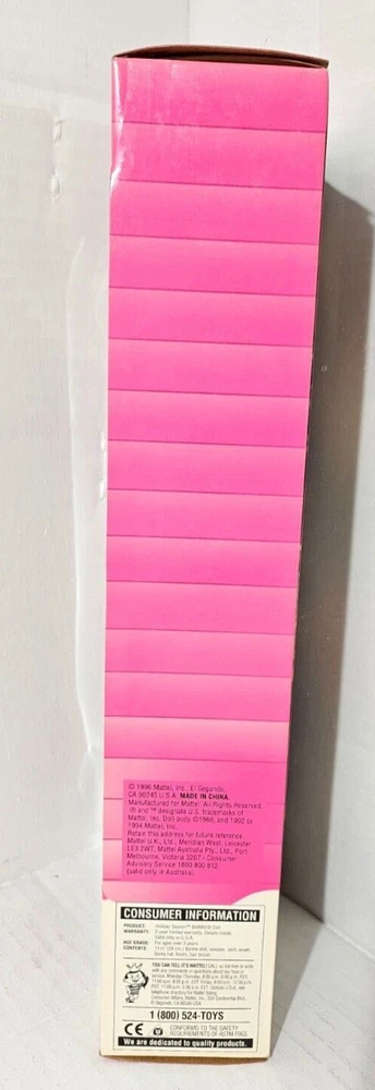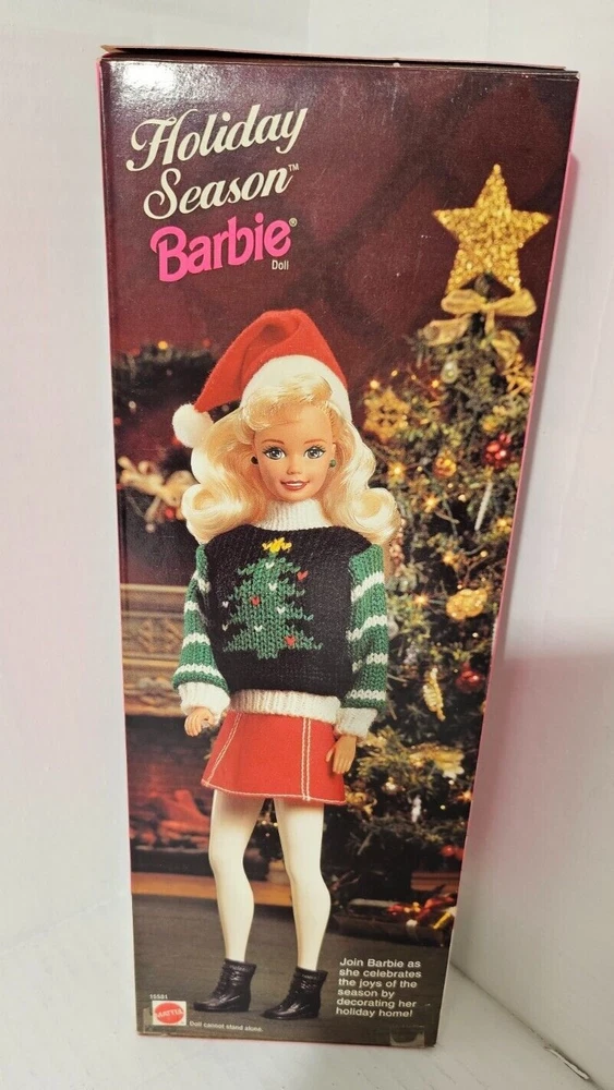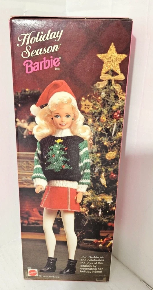 Special Edition Holiday Season Barbie issued in 1996 with cute holiday outfit and Santa hat. Both doll and box are in excellent condition, though there is some wear on the box, consistent with age (see photos). Doll has never been removed from the box. Please note, this doll is 28 years old and is being sold as a collector's item. I accept returns, but only if the item is undamaged. If you break the seal, remove the doll or any of the other contents from the box, or do a poor job packaging the return so the item is damaged in shipping, I can no longer offer a refund since that will destroy the value of the doll. Thanks for your understanding!