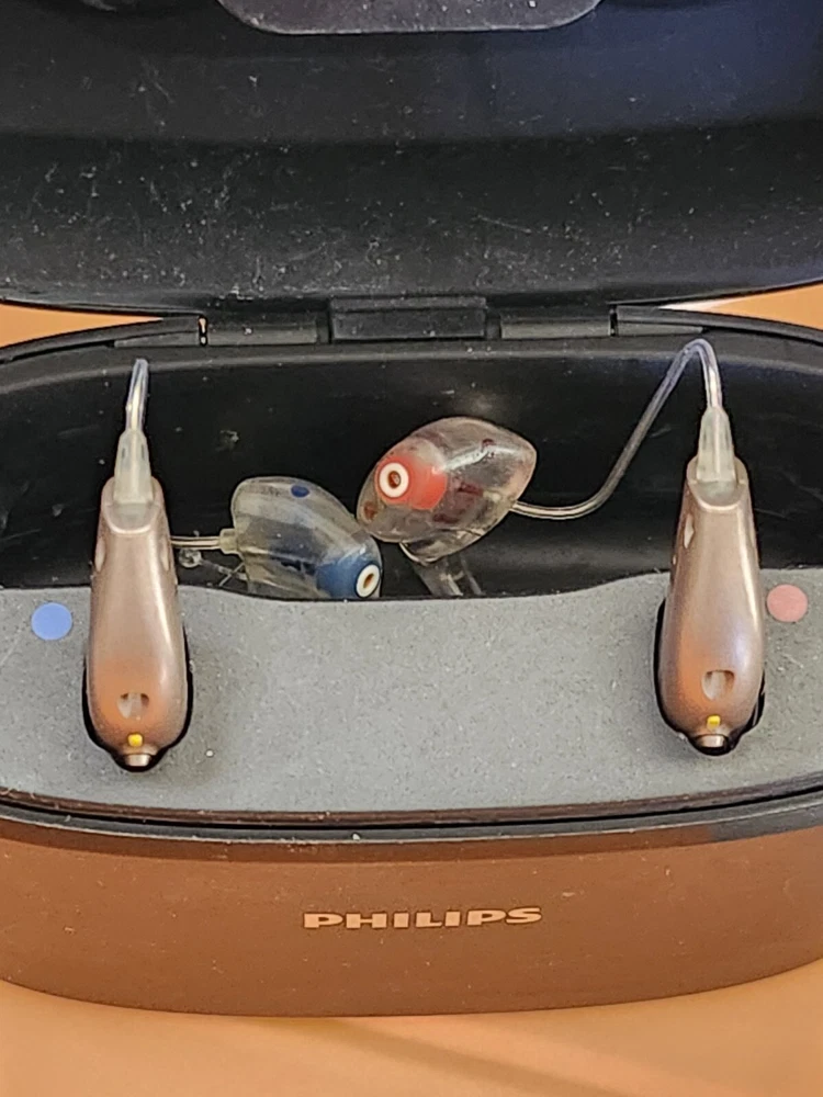 Philips HearLink 9040 MNR TR Rechargeable Hearing Aids Charger with box. Excellent used condition as shown, Paid 1500.00 in 3-1-24 and used for for a short time.