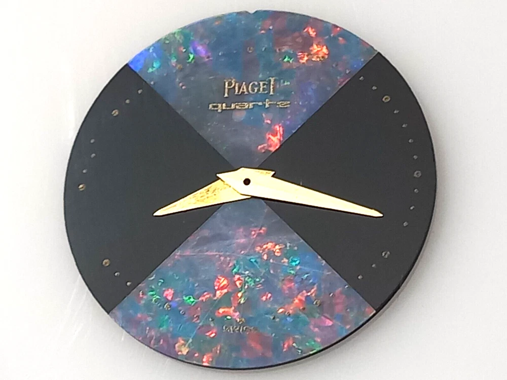 PIAGET Extremely rare vintage PIAGET 20.6mm OPAL/ONYX dial with original gold hands. The dial is for Piaget watches with quartz movements. - Dial: 20.6 mm Opal/Inox dial (the dial shows small hairlines but still in excellent condition) - Hands: Original solid gold hands We combine shipping. Terms & Conditions We are dealing with pre-owned/ used/ vintage timepieces. Our items are 100% authentic. All photos are taken by us. Buyers will receive the same item that is shown in the photos. We provide a full description and many photos of the item and we expect you to contact us for extra details. Shipping We ship international expedited shipping via DHL with tracking. Phone number is required by DHL for shipping. We ship from Lebanon. We combine shipping. We are not affiliated in any way with any of the presented brands. Buyer will have to pay any custom fees for releasing the item in their own country, this will effect delivery times. Check the custom fees in your country before you buy.