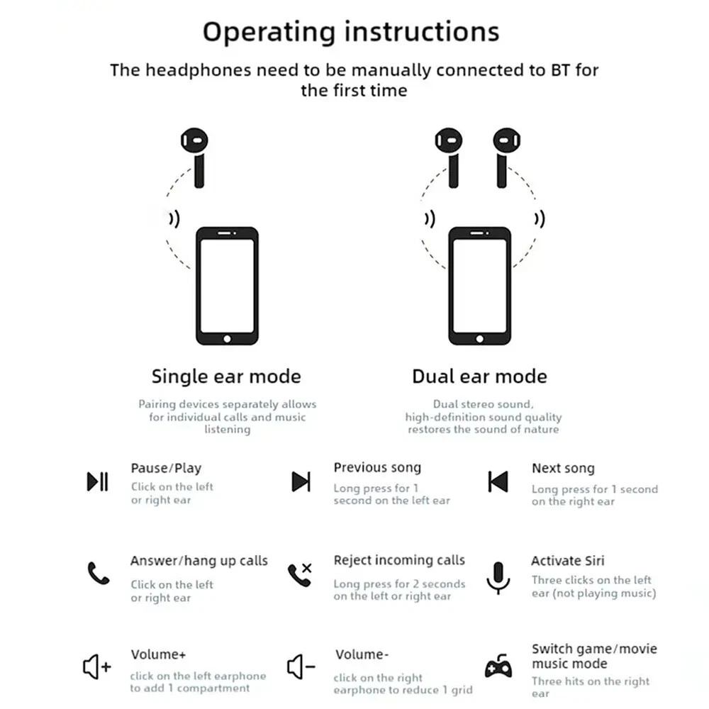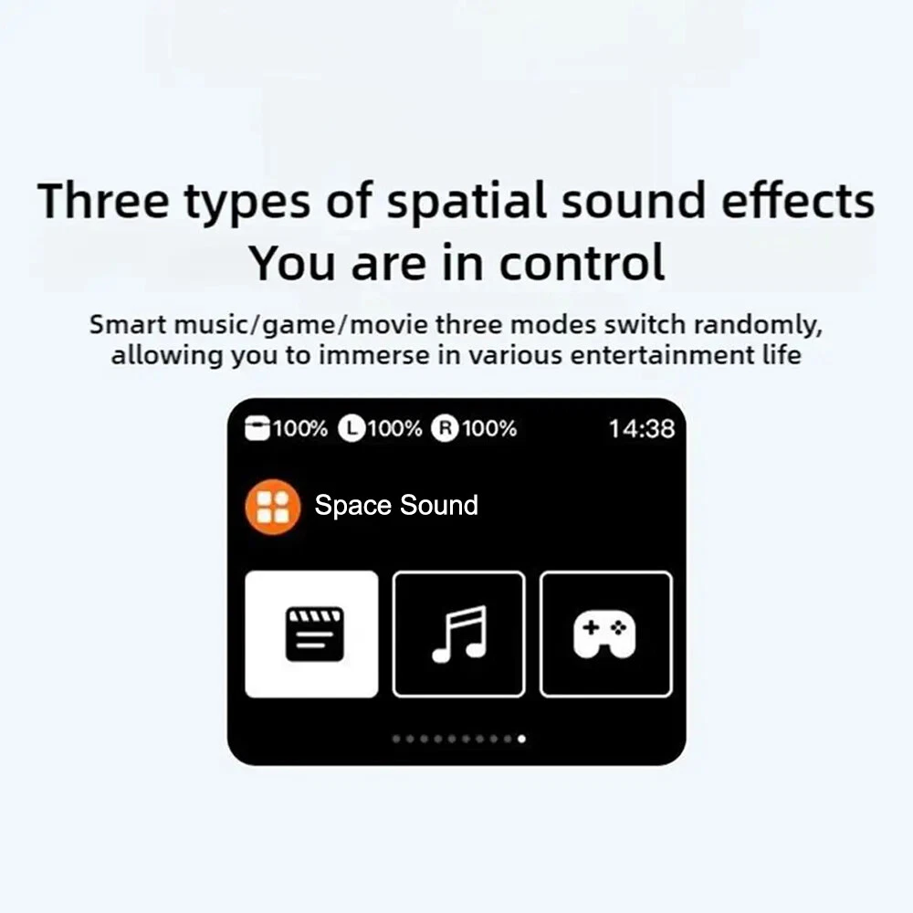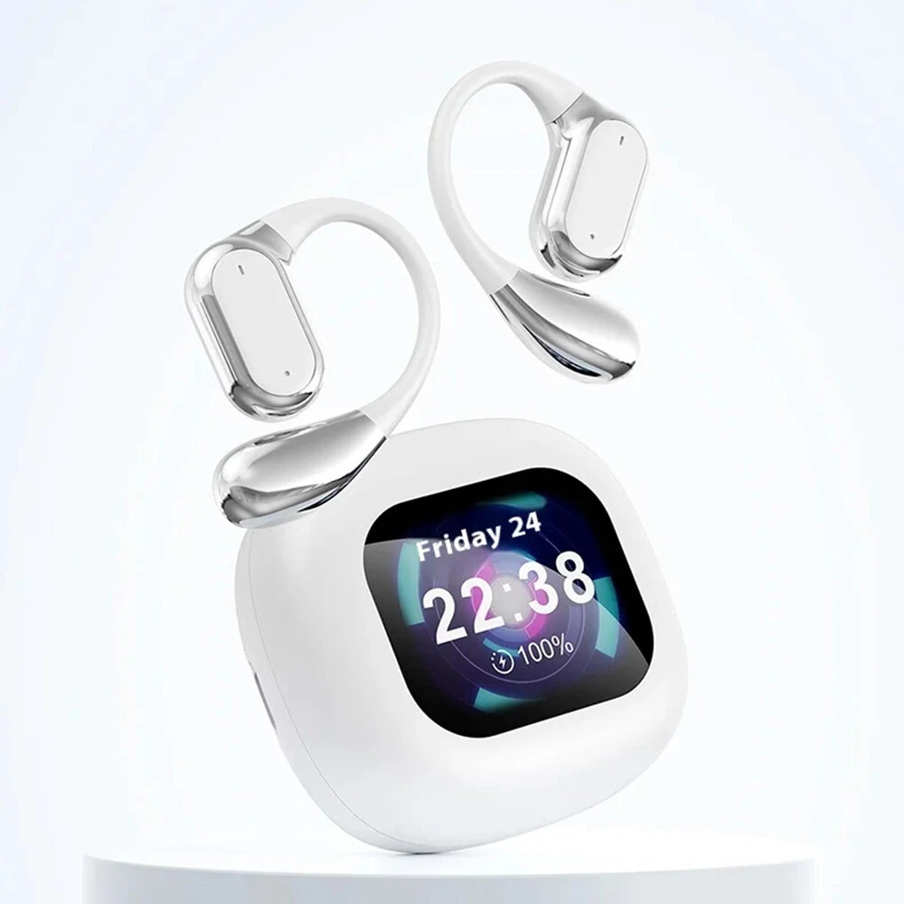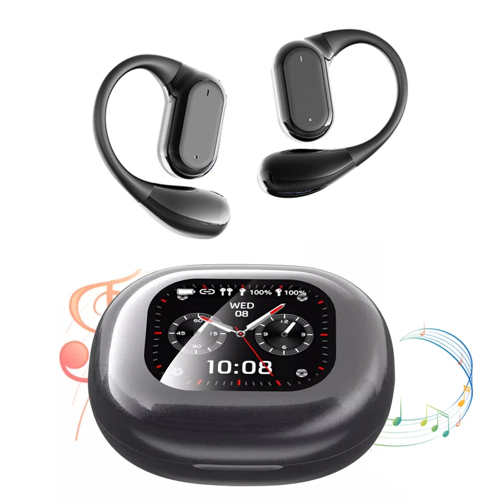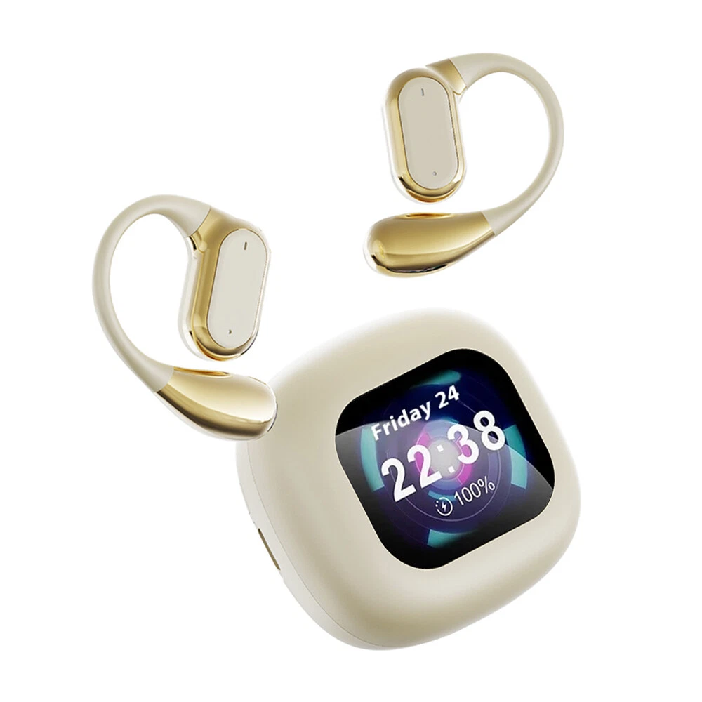 Features: ✅ HiFi sound quality, composite diaphragm moving coil unit. ✅ LCD full-colour display, one-finger control with rich functions. ✅ Free control of music playback, noise reduction control, equaliser switching and so on. ✅ Noise cancellation mode, reduce external noise interference. ✅ Low latency, more accurate when playing games. ✅ High-speed Bluetooth 5.4 seconds connection No delay. ✅ Suspended headphones, comfortable to wear, zero-feeling wearing, immersive experience. ✅ Intuitive touch function, accurate recognition, anti-mistake touch. ✅ One button operation, easy to operate various functions. ✅ High-precision speakers, audio-grade surround sound. ✅ 16 languages, English/Russian/Spanish/German/French/Japanese/Korean etc. Specification: * Product Name: bluetooth headset *Headset type: on-ear *Noise cancellation function: ENC *Bluetooth protocol: HFP, A2DP, HSP, AVRCP *Audio decoding:AAC,SBC *Bluetooth version: 5.4 *Transmission distance: ≥10 metres (without obstacles) *Speaker specifications: ΦF12mm composite film copper ring *LCD screen: 2 inch touch screen *Waterproof rating: IPX 5 *Working time: 8 hours *With charging case: 36 hours *Input voltage: DC5V1A *Headset battery capacity: 40mAh *Charging compartment battery capacity: 500mAh *Charging port: Type-c *Charging time: 1.5 hours *Product material: ABS *Product colour: black/white/skin colour Package List: 2*Bluetooth headset (left and right ear) 1*Charging compartment 1*User Manual 1*Type-c cable Attention: 1. Please allow 1cm error due to manual measurement! 2. Due to different display resolution, please take into account the slight colour difference! On Nov 18, 2024 at 01:13:23 PST, seller added the following information: