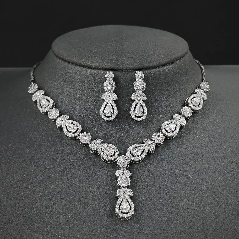 Earrings and necklace set 2 pcs in a pack, fashion, pear, for bride, fashionable 100% Brand New and High Quality Material: Copper + Cubic Zirconia Main Color: silver Size: As the picture Quantity: 2pcs Beautiful and amazing design Unique and exquisite earring Necklace A great Gift for your friends Style: Fashion, Hot Occasion: Everyday,Daily Thickness: Regular Pattern:solid Package includes: 2pcs Notes: Due to the light and screen setting difference, the item's color may be slightly different from the pictures. Please allow slight dimension difference due to different manual measurement. Shipping We offer FREE shipping on all orders! We ship within Three business days of payment, usually sooner. We use a selection of shipping services such as UPS, FedEx, USPS etc. We only ship to the lower 48 states, no APO/FPO addresses or PO Boxes allowed. Local pickups and combined shipping options are not provided at this time. Return You can return a product for up to 30 days from the date you purchased it. Any product you return must be in the same condition you received it and in the original packaging. Please keep the receipt. Payment We accept payment by any of the following methods: PayPal Please pay as soon as possible after winning an auction, as that will allow us to post your item to you sooner! Feedback Customer satisfaction is very important to us. If you have any problem with your order, please contact us and we will do our best to make you satisfied. Contact Us If you have any queries, please contact us via ebay. We usually respond within 24 hours on weekdays. Please visit our eBay store to check out other items for sale! Thank you for shopping at our store.