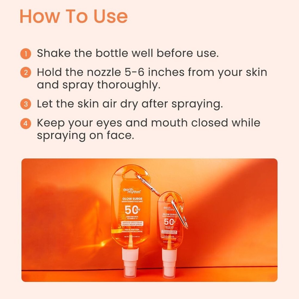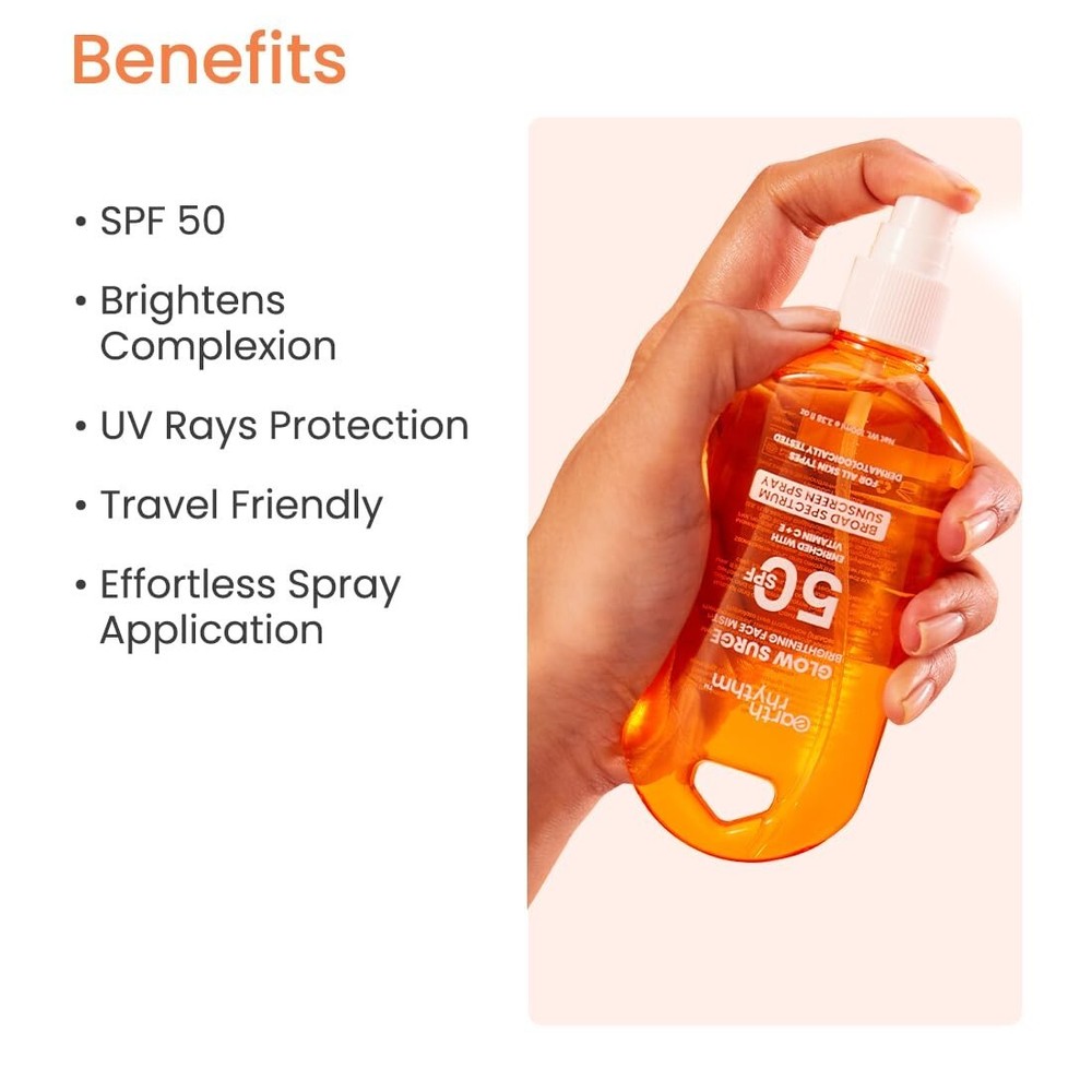 Broad-Spectrum SPF Protection: Our Sun Spray offers effective protection against harmful UV rays, helping to prevent sunburn and skin damage. Lightweight & Non-Greasy: This spray absorbs quickly without leaving a sticky residue, making it perfect for all-day protection. Experience a no-mess, fresh feel with each application. Vitamin C: Packed with the brightening and anti-ageing benefits of Vitamin C, this sun spray helps to enhance skin radiance, and reduce the appearance of sun-induced damage to the skin. It keeps your skin looking youthful and vibrant. Vitamin E: Known for its moisturising and healing properties, Vitamin E works to keep your skin hydrated, soft, and protected from environmental pollutants. It aids in preventing moisture loss and maintains a smooth, healthy skin barrier. Brightening Formula: Enriched with nourishing ingredients, this sun spray ensures your skin stays bright and supple even under the sun. Combat dullness and enjoy soft, silky skin all day long. Safety Information: Store in a cool & dry places. For external use only. Patch test before use. Directions: Shake the bottle well before use. Hold the nozzle 5-6 inches from your skin and spray thoroughly. Let the skin air dry after spraying. Keep your eyes and mouth closed while spraying on the face. Product description Protect and nourish your skin with our Sun Spray, enriched with Vitamin C and Vitamin E. This lightweight, non-greasy formula provides broad-spectrum SPF 50 protection while delivering essential antioxidants to combat environmental damage. Perfect for daily use, it keeps your skin safe from harmful UV rays and leaves it feeling fresh and bright. From the brand Previous page We are India's leading clean beauty brand offering clinically effective products that prioritise safety for you and the planet. Our range is designed to address multiple concerns, aiding in minimising excess purchases and packaging. With certifications from ECOCERT, PeTA, and rePurpose Global, we're globally recognised for our toxin-free products, cruelty-free ethos, and plastic neutrality. Visit Complete Skin Care Range Toxic and Chemical-Laden Products Ambiguous Ingredient Lists Lack of Versatility of Products Testing on Animals Environmentally Damaging Packaging Next page