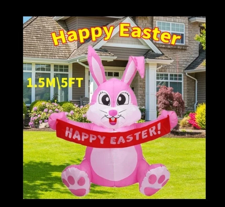 Easter Bunny Decor Inflatable New Pink Orange Bunny. Condition is New. Shipped with USPS Ground Advantage.