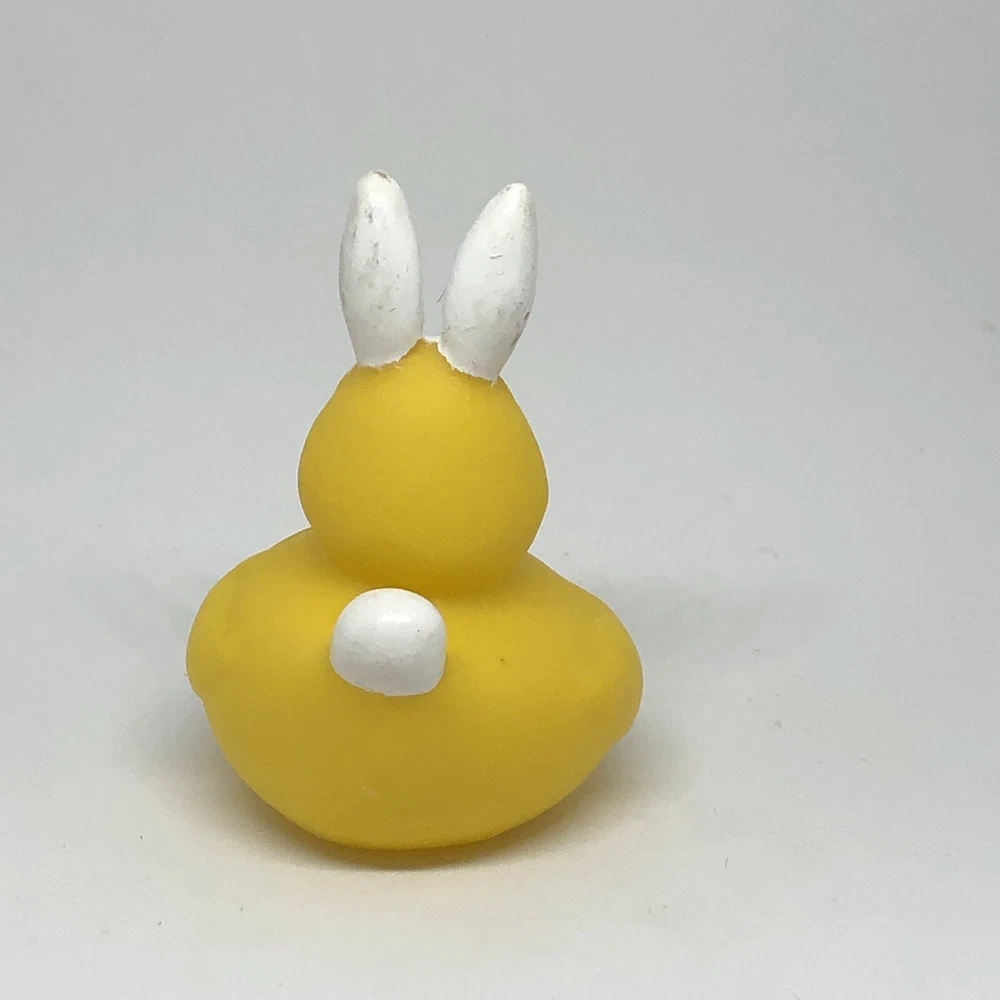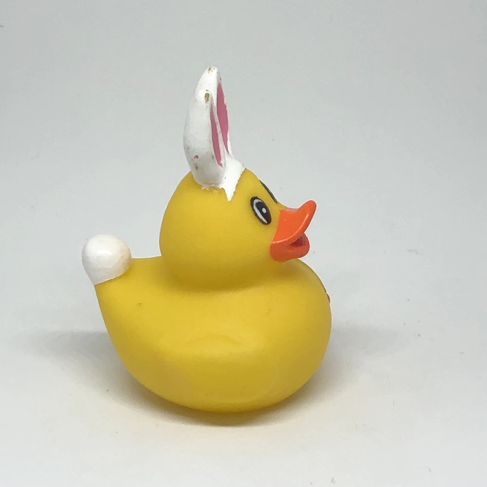 Easter Bunny Ears Rubber Duck 2” Duckie Holding Easter Basket Bath Pool Toy Note: Item has surface scratches/paint loss; shown in photo! Thank you for stopping by!