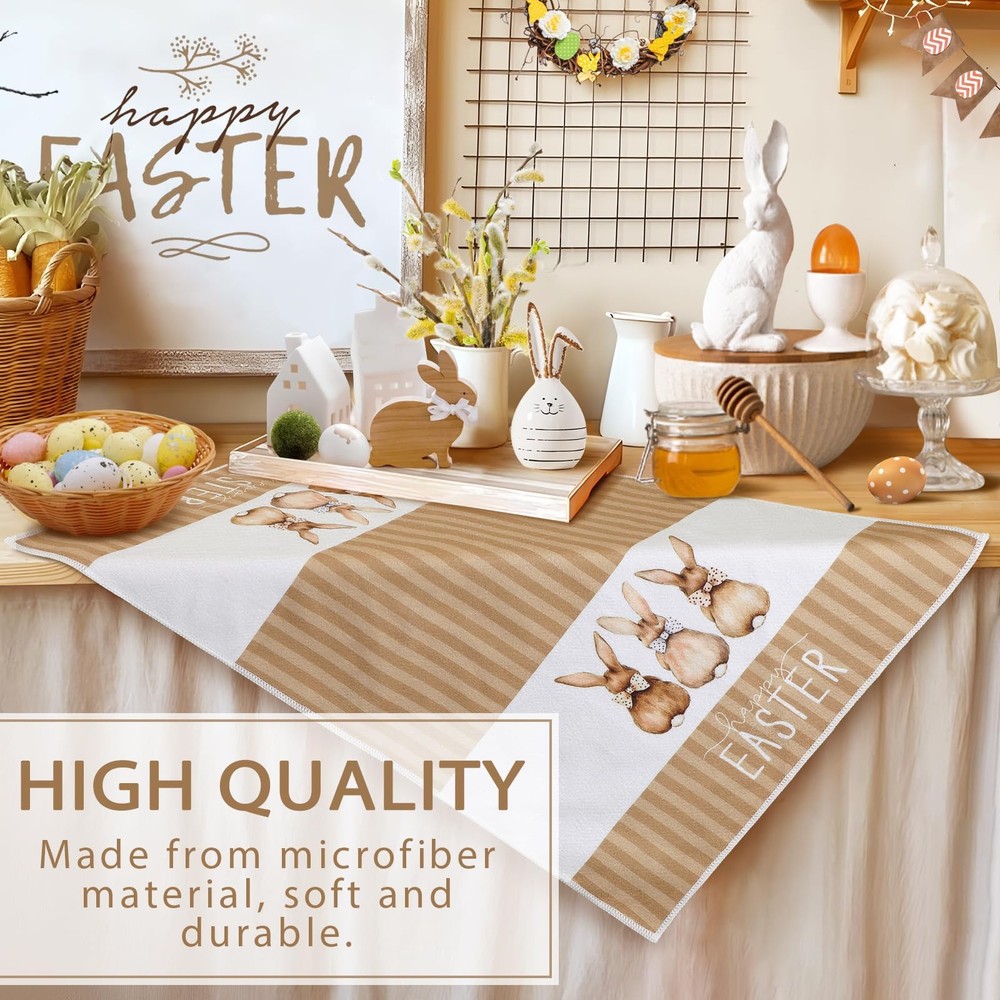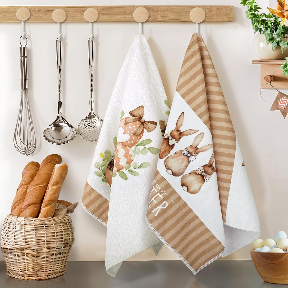 Easter towels for bathroom are the perfect additions to your kitchen decor! Crafted from Soft, absorbent material, these easter bathroom towels not only enhance your kitchen's aesthetic but also serves a practical purpose for all your cooking and baking needs. Featuring vibrant colors and cute bunny designs, our easter tea towels are designed to bring joy to your family. The easter bath towels can decorate your kitchen. You can hang it on the drawer handles, oven handles or hanging racks in the kitchen, which is easy to access and creates a strong festive atmosphere. And it can also be used as a gift for friends, family members or people who like cooking to express the blessing and care. In addition to the beautiful appearance, these easter bath hand towels have excellent water absorption and durability. It absorbs water quickly and is very practical when washing hands, wiping dishes or cleaning the kitchen. At the same time, after special treatment, the easter towel has a high degree of color firmness, even after repeated washing, it can still maintain the original bright color. Durable and easy to care for, our easter hand towel is machine washable, ensuring it remains fresh and vibrant throughout the season. Whether you're drying dishes, wiping down countertops, or adding a decorative touch to your kitchen, this towel is the ideal companion for all your culinary activities. Transform your kitchen into a beautiful garden with our easter kitchen towel—where style meets functionality. Embrace the season and let this charming accessory embody your love for Easter! Easter Kitchen Decor: These easter dish towels are specially designed for Easter, featuring exquisite Easter patterns such as bunnys, leaves and eggs, decorating your kitchen to create a festive atmosphere. High Quality Materials: Easter towels are made of soft and durable materials with good water absorption and breathability, which can efficiently absorb moisture and stains, ensuring the cleanliness of your kitchen. Multi Functional: The easter towels kitchen are of moderate size and suitable for most occasions. They can be used as hand towels, dish towels, as well as for cleaning workbenches, appliances, and tabletops in kitchens, homes, bathrooms, farmhouses, and other places. It can also be placed under a hot tea cup, teapot, or plate to protect the tabletop. Easy to Clean: This easter hand towels are easy to clean, just add a small amount of detergent and gently rub to make it clean, and can withstand multiple washes to maintain its bright color and soft texture. Easter Hostess Gift Ideas: The easter dish towel for kitchen is a good gift choice that will come in handy when you visit your neighbors and friends during Easter. It is also suitable as a housewarming gift for daughters, sons, granddaughters, grandsons who have just started a new family.