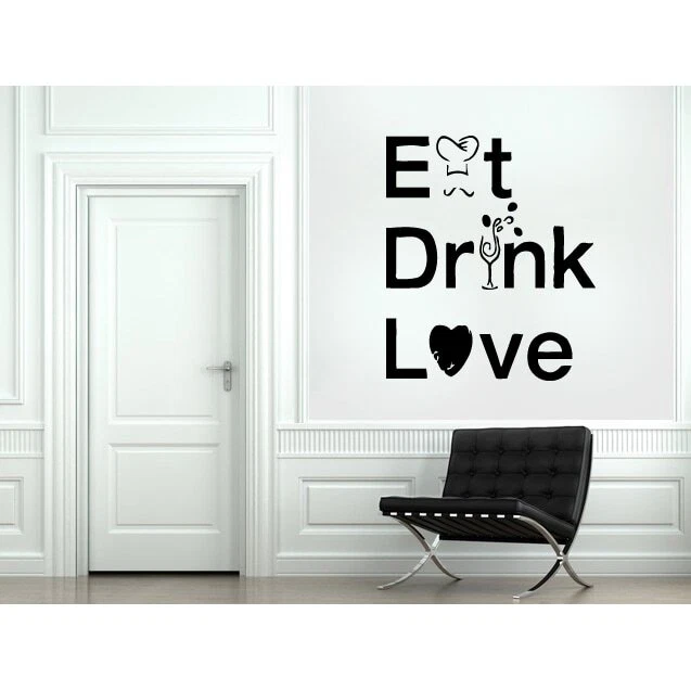 Decorate your home with this beautiful and affordable vinyl decal for your walls. The decals are easy to apply and make a room look elegant. With a paint-like appearance, these vinyl decals will completely change the way almost any surface looks.Decals can be applied to any clean hard surfaceGraphic can be applied to carsDecal is made of high-quality, self-adhesive and waterproof vinylRemove vinyl without damaging surface or making it dirtyArtist: StickalzProduct type: Vinyl wall decorStyle: OtherFormat: HorizontalSize: MediumSubject: AbstractDimensions: 22 inches x 35 inches Free Shipping Over $49.99* Details Eat, Drink, Love quote Wall Art Sticker Decal Product Description: Decorate your home with this beautiful and affordable vinyl decal for your walls. The decals are easy to apply and make a room look elegant. With a paint-like appearance, these vinyl decals will completely change the way almost any surface looks. Decals can be applied to any clean hard surface Graphic can be applied to cars Decal is made of high-quality, self-adhesive and waterproof vinyl Remove vinyl without damaging surface or making it dirty ArtistStickalz Product typeVinyl wall decor StyleOther FormatHorizontal SizeMedium SubjectAbstract Dimensions22 inches x 35 inches