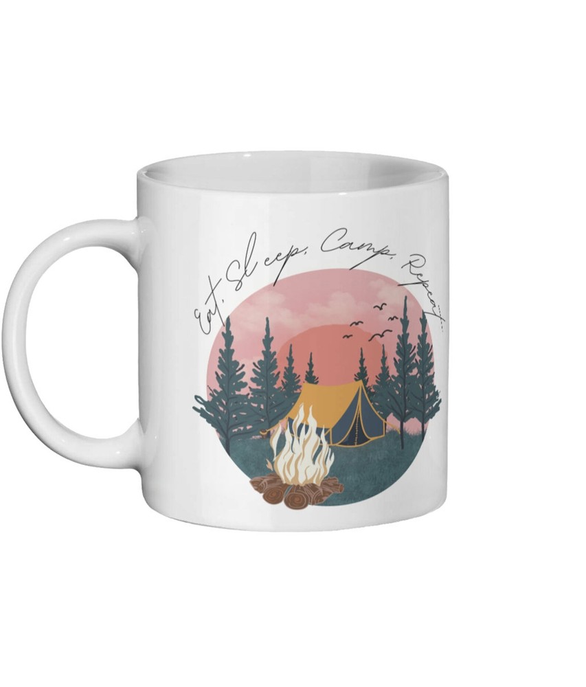 Eat Sleep Camp Repeat Camping Lover Gift Camping Mug Camping Joke Mug Camping Gift Tents Mug Camping Tent Gift Outdoors Lover Mug Product Details.. This high quality 11oz. ceramic white mug has a premium hard coat that provides crisp and vibrant color reproduction sure to last for years. Perfect for all hot & cold beverages. The highest quality printing possible is used. It will never fade no matter how many times you wash it. Material: 100% Ceramic. Print both sides. Dishwasher and Microwave Safe. High Gloss + Premium White Finish. Printed in the U.S.A. Personalized & Custom. We support personalized and custom mug to add custom, when placing an order, you can add notes to the "order note" in shipping address section. Also you can contact us directly via message. Shipping Info. Ready to ship in 1 to 2 business days, All products are made-to-order and proudly printed in the United States. Shipped by USPS and DHL, You will receive your order in 5-7 days. Replace & Refund. All products are defective during shipping broken, chipped will be replaced free of charge. You are not satisfied with the product, we will refund 100% money to you. If any other issues arise, please do not hesitate to message, we would be more than happy to assist you.