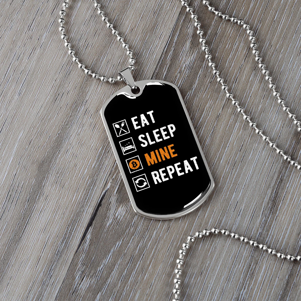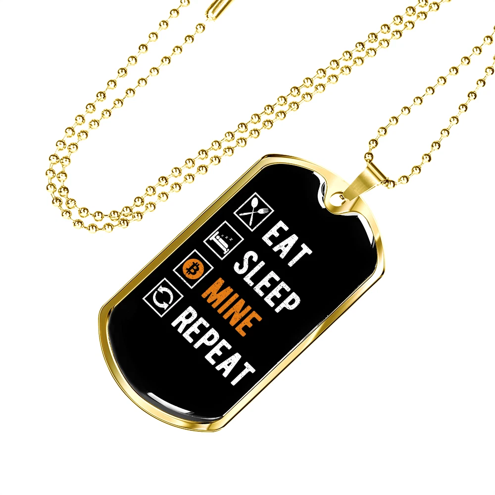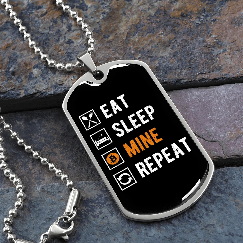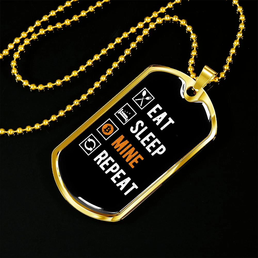 Eat Sleep Mine Repeat Crypto Necklace Stainless Steel or 18k Gold Dog Tag 24"