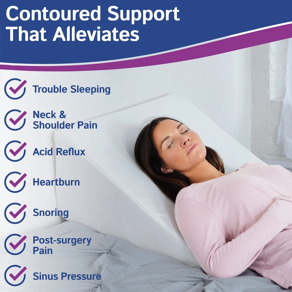 Ebung Bed Wedge Pillow with Memory Foam Top 12in - 45 Degree Wedge Pillow for Multipurpose Support: Designed as a large wedge pillow for sleeping, sitting, or resting; helps relieve snoring, heartburn, and post-surgery discomfort while promoting better sleep Comfortable Memory Foam: Crafted with high-density memory foam, this Ebung wedge pillow adapts to your body’s shape; offers durable support and retains its form with continued use Ideal for Recovery: Use this wedge pillow post surgery for optimal elevation; suitable for shoulder or leg recovery; enhances circulation and comfort during prolonged rest Washable Cover Included: Features a soft, removable cover that is machine washable; keeps the bed wedge pillow clean and breathable for long-term use and added hygiene Ergonomic Design: This Ebung bed wedge pillow measures 25 x 24 x 12 inches; offers the suitable incline for sleeping, reading, or sitting comfortably in bed or on the couch Wedge pillow is designed for ultimate comfort and relief. Use as a bed wedge pillow for sleeping, back pillow, leg pillow, or as a wedge pillow for after surgery. This memory foam pillow also allows for enhanced sleep or as an elevation pillow for GERD relief. Shipping We offer FREE shipping on all orders! We ship within Three business days of payment, usually sooner. We use a selection of shipping services such as UPS, FedEx, USPS etc. We only ship to the lower 48 states, no APO/FPO addresses or PO Boxes allowed. Local pickups and combined shipping options are not provided at this time. Return You can return a product for up to 30 days from the date you purchased it. Any product you return must be in the same condition you received it and in the original packaging. Please keep the receipt. Payment We accept payment by any of the following methods: PayPal Please pay as soon as possible after winning an auction, as that will allow us to post your item to you sooner! Feedback Customer satisfaction is very important to us. If you have any problem with your order, please contact us and we will do our best to make you satisfied. Contact Us If you have any queries, please contact us via ebay. We usually respond within 24 hours on weekdays. Please visit our eBay store to check out other items for sale! Thank you for shopping at our store.