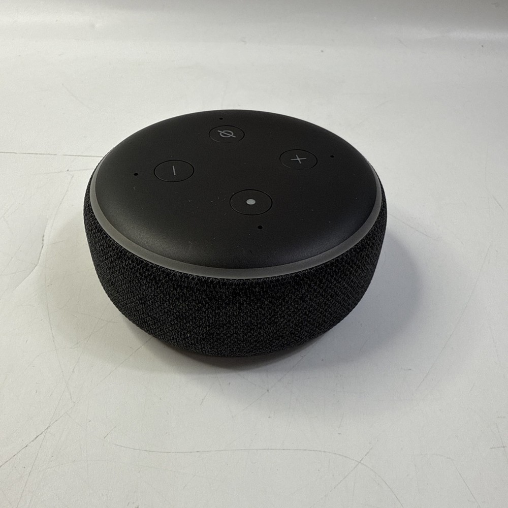 The Amazon Echo Dot 3rd Generation is a black smart speaker that is compatible with Amazon's Alexa voice assistant. It features Bluetooth and Wi-Fi connectivity, allowing for wireless streaming of audio. The speaker has a spherical shape and is made of plastic material. With a power supply included, this smart speaker offers 15W RMS power output and has a 3.5mm audio jack for additional connectivity options. It was manufactured in 2018 in Vietnam and does not come with a manufacturer warranty.