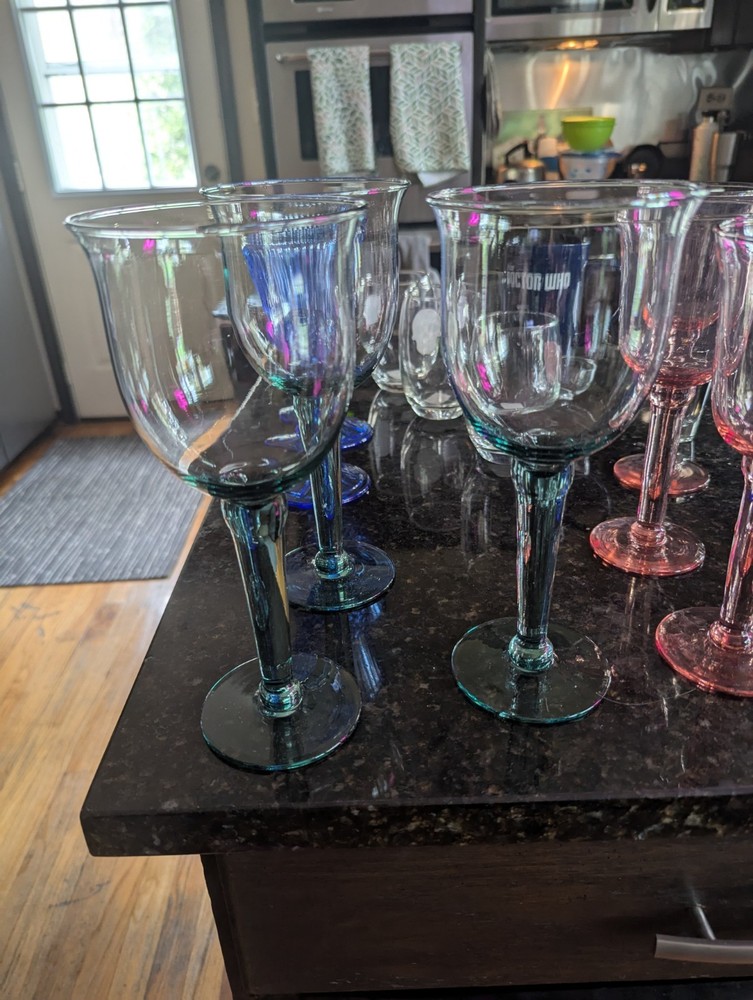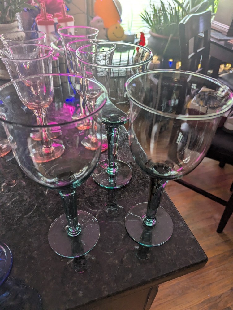 Large Water/Wine Goblets 9.5" Green Recycled Glass 22 oz. La Mediterránea . Condition is Used. Shipped with USPS Ground Advantage.