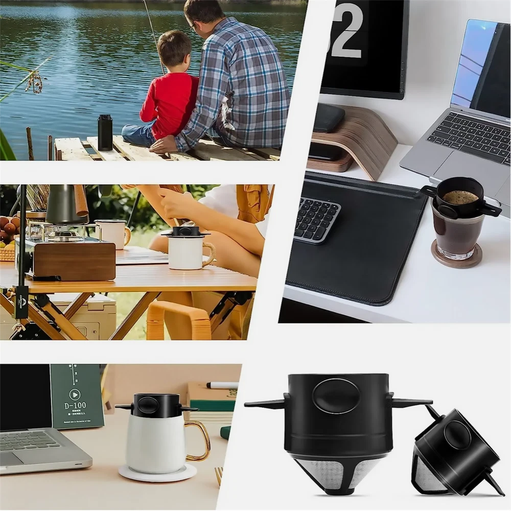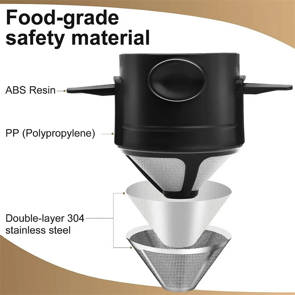 This reusable coffee filter is a game-changer! The sturdy stainless steel and ABS build means no weird tastes, just pure coffee flavor. Super portable and folds up neatly, so it’s perfect for travel. Love that it cuts out paper waste—eco-friendly and convenient. Fits most cups and cleans up easily. A must-have for coffee lovers who hate messing with paper filters!