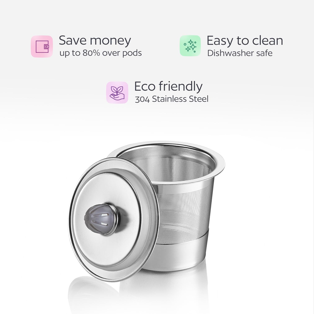 Store New Arrivals Add to Favorite View Feedback Contact Stainless Steel Reusable K Cup for Keurig Coffee Makers - Universal Compatible Description Item model number not Unit Count 1.0 Count Material Stainless Steel Country of Origin China Item Weight 1.13 ounces Shape Basket Number of Pieces 1 Package Dimensions 2.29 x 2.27 x 1.79 inches Size Set of 1 Compatibility: Our reusable K cups work with a variety of Keurig coffee machines, including K-Mini, K-Classic, K-Elite, K-Latte, K-Cafe, K-Select, K-Compact, and both 1.0 and 2.0 models. They are also compatible with Breville and Mr. Coffee K cup machines. (Please see the detailed compatibility list and note that they are not suitable for Keurig K Supreme, K Supreme Plus, or K-Supreme Smart models.) NOT COMPATIBLE with K-Mini Plus, K-Duo Plus, Keurig K-Supreme/Plus/Smart, K-Slim (Multistream), K-Brew+Chill, K-Duo Hot & Iced(Gen 2). Environmentally Conscious: Our stainless steel reusable K cups are made from high-quality, BPA, lead, and DEHP free materials, which help reduce the use of paper filters and plastic coffee capsules. By choosing these eco-friendly K cups, you are contributing to a greener environment. The stainless steel design of our reusable K cups retains the coffee's natural oils and flavors, providing you with a superior tasting coffee experience. These reusable coffee filters are also dishwasher safe, making cleanup a breeze. Ingenious Design: The one-piece construction of our reusable K cups features a tightly sealed top to prevent spills during use, while the 360-degree perforation on the bottom and side walls ensures optimal water flow for full coffee ground saturation and a richer, more flavorful brew. GoodCups Stainless Steel Reusable K-Cups - the perfect companion for your Keurig coffee maker! Our eco-friendly, reusable coffee filter is designed to provide you with the ultimate coffee brewing experience while reducing waste from disposable plastic pods. Made from high-grade 304 stainless steel and BPA-free materials, our durable and safe reusable coffee pod ensures that you'll enjoy fresh, authentic coffee flavor every time. The filtration system, with its numerous perforations, ensures optimal water saturation for enhanced coffee extraction and the rich taste you desire. Our reusable coffee capsule not only saves you money by presenting a cost-effective alternative to disposable coffee pods but also encourages eco-friendly practices. The simple design of the capsule allows for easy filling, insertion, and cleaning, leading to a smooth and hassle-free coffee brewing experience. So, why wait? Make the switch to our Stainless Steel Reusable Coffee Capsule now and savor the ideal combination of flavor, convenience, and environmentally aware living. Raise a cup of exceptional coffee and a greener world! ABOUT US We offer the best prices around on high quality products. Our E-store includes media such as books, movies, music and games while offering electronics, toys, sporting apparel, clothing, tools, general home, garden items and more. SHIPPING We are always working hard to ensure your package arrives as soon as possible. Please understand that some factors like weather, high postal traffic, and the performance of shipping companies are outside of our control. We offer free shipping to the lower 48 states and ship within 2 business days of payment, usually sooner. We do not accept P.O. Boxes. Please provide a physical address. RETURNS We offer a 30-Day Return Policy on items which you are not completely satisfied with. You have the option for a full-refund or an exchange of the item. No returns are available on items shipped outside of the USA. PAYMENT We accept PayPal. CONTACT US This page content is yet to come Please ad us to your favorite seller and visit again later Thank You CUSTOMER SATISFACTION We try our very best to make sure every customer is completely satisfied. If there's a problem, message us! We're happy to help.