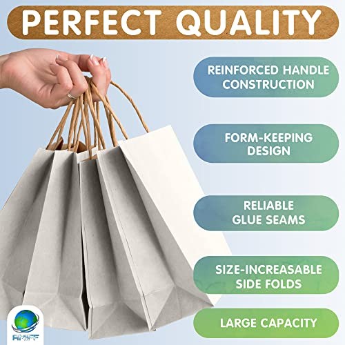 Return Policy Fast Delivery Trusted seller White Kraft Paper Bags with Handles Bulk, 10 x 5 x 13 Inch. Pack of 25 Foldable Shopping Bag, 150 GSM. Kraft Paper Gift Bags with Handles. Gift Gag Bulk for Wedding favors, Valentines Day Product Description Package of 25 Kraft Bags with Handles, Measuring 10 x 5 x 13 Inches. Paper grocery bags feature a White color and a smooth surface. Despite their lightweight design, these party gift bags offer impressive strength and enhance brand presentation. Sturdy Material. Made from 150 gsm paper, these Valentines party bags offer the perfect balance of strength and lightness. The high-quality material of the birthday gift bag ensures tear resistance, while the ink-ready surface invites customization. Thoughtful Design. Reinforced rope-style handles and durable seams on paper retail bags with handles provide a secure hold for up to 2.2 pounds. Form-retaining design and attractive appearance of boutique bags for small business provide both practicality and aesthetics. Protection and Durability. Paper grocery bags with handles aren't just about looks; they're built to last. Tear-resistant and glued-seam, party favor bags promise to keep items safe. The odor-free feature of these reusable gift bags bulk ensures a pleasant experience. Versatility. Boutique shopping bags for groceries are ideal for a variety of uses — from weddings to craft shows, from e-commerce packaging to gift giving. Recyclable bags for gifts are great for books, small retail items, and more. Shipping Returns Payment Shipping Shipping is FREE to all addresses other than APO/PO boxes in the lower 48 states. All our stock ships from US-based warehouses. Shipped via USPS or UPS (depending on location and package weight) Unless stated otherwise, all orders will ship within 24-72 hours of your payment being processed. Check our feedback to see the great reviews of FAST shipping we offer. Returns Seller does not accept returns Payment We currently accept payment via eBay managed payments only. Once payment is cleared, we will dispatch your shipment within 1-3 business days. Please refer to the "Shipping" tab for more information regarding shipping speed to your destination.