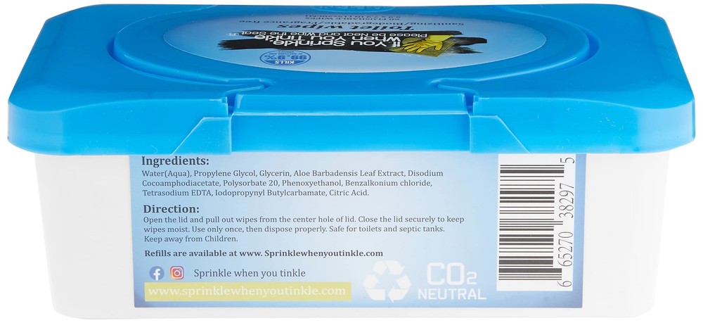 Official Trademark ", please be neat and wipe the seat." Our toilet seat are a practical safe and efficient way to keep family and friends safe. Toilet seat covers are not 99% sanitary. However, our Toilet Seat are! Toilet seat are used for wiping the toilet seat prior to use! This toilet seat wipe is designed to clean the toilet seat, it’s really simple to use. Our pop up dispenser can be placed on the back of the toilet to easily clean toilet seat. Safely clean toilet seats before use No animal testing Easy to use Our philosophy is simple! We believe that family is important and the only way to keep them safe is by practicing good hygiene and cleanliness. We want to help as many people as we can to stay safe. We created these products with you and your family in mind. We truly hope you enjoy our products as much as we enjoy keeping your family safe. Stay safe out there! This product is designed to keep your family safe and help your family feel safe when using private or public restrooms. We suggest buying , for your family and for someone you love to give as a gift. Thank you for your purchase of our toilet seat . Refills are available at www.sprinklewhenyoutinkle.com 1.Open the lid and pull out from the center hole of lid. Close the lid securely to keep moist 2. Wipe the toilet seat in a circular motion 3. Flush the wipe down the toilet, use only once, then dispose properly.4. Congrats you are now safe to sit with confidence! Keep away from children! Biodegradable, Septic Safe, Multipurpose, Natural Fibers, Leaf Extract, Aloe Extract, Toilet Cleaner, , Potty Training, Bathroom , Sustainability,Easy to Use, 180 count, Natural Fibers, Fragrance Free, Janitorial Supplies, Eco Friendly