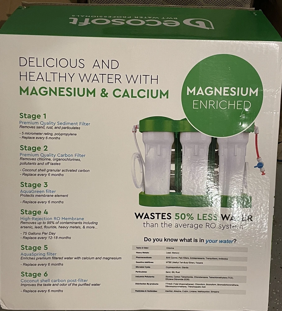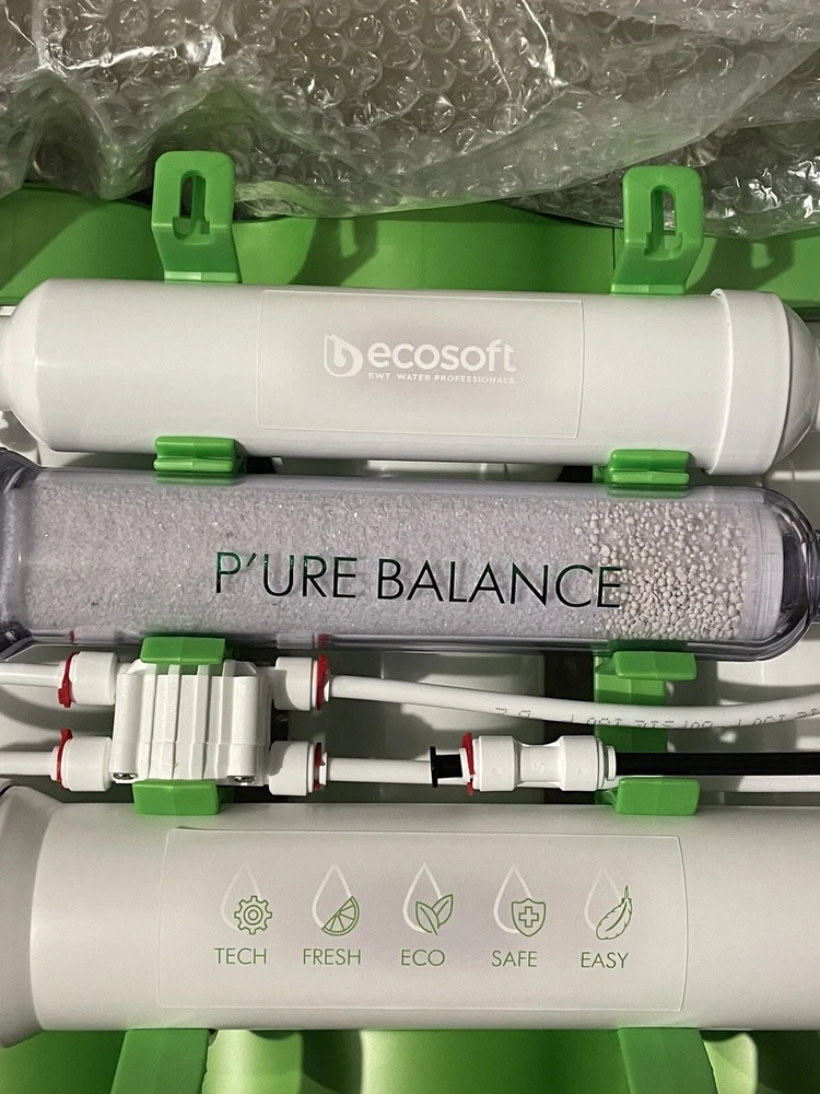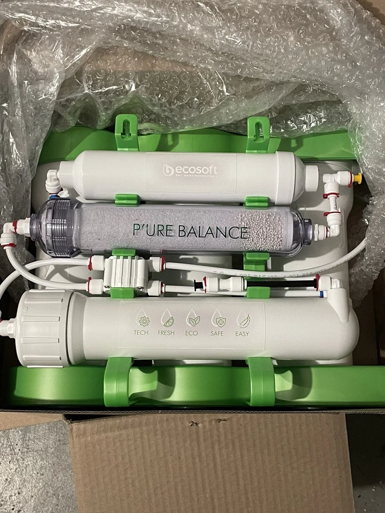 Introducing the Ecosoft P'ure Balance Reverse Osmosis Filtration System - the perfect addition to any household! With 6 Stages of advanced filtration technology, this system removes all known contaminants to provide you with pure, clean and refreshing water. Made with high-quality plastic material and designed specifically for whole home use, this system is compatible with the EcoSoft brand and is suitable for any household. The Ecosoft P'ure Balance comes in a refreshing green color and is a type of whole house filtration system that is perfect for your home improvement needs. With a compatible model of Reverse Osmosis and a model number of Reverse Osmosis System, this system is the perfect solution for your water filtration needs.