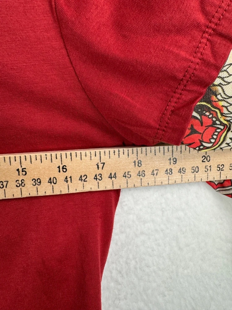 New with Tag "Turn heads with this Ed Hardy Sheer Sleeve Graphic Cropped Shirt in bold red! 🔥 Featuring retro-inspired graphics and sheer sleeves, this statement top brings an edgy, Y2K vibe to any look. The cropped fit is perfect for pairing with high-waisted jeans or skirts, adding a touch of daring style to your wardrobe. Flat lay: pit to pit 17.5" Length 16" Material: 65% Poly 35% Cotton Y2K, 90s, colorful, sheer, graphic, festival, moto, cropped, tiger, steampunk, moto, goth, biker, vampy, rocker, rebellious, metal, alternative, vintage inspired PLEASE check all flat lay measurements and listings carefully BEFORE PURCHASE!I put in a lot of work into hand measuring and researching each items as best as I can! Thank you so much for your consideration! Please note that: RETURN SHIP FEE IS PAID BY THE BUYER! If you are not too familiar with flat lay measurements, I recommend taking a measurement of your own clothes that you feel comfortable and compare with the measurement I provide. For returns: The items MUST BE IN SAME CONDITION AS SOLD for full refund! We all don't like returns and let's work together to minimize! Please note that RETURNS ARE NOT ACCEPTED FOR NEW WITH TAG OR NEW WITHOUT TAG ITEMS!