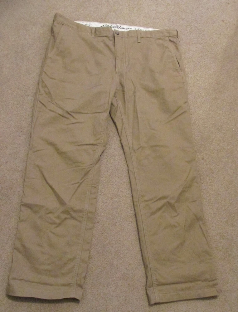 Eddie Bauer Flannel Lined Pants Mens 42-32 Classic Fit Khaki Beige Legend Wash NEW w/Tag