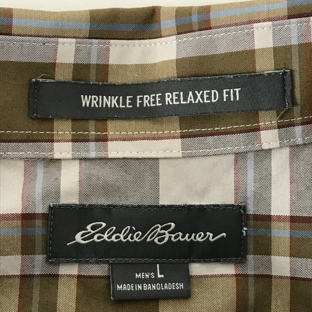 Eddie Bauer Relaxed Fit Button Down Shirt -Size: large -Color: multi plaid -Relaxed fit -Button-front closure -Button-down collar -Long sleeves with button cuffs -Chest pocket -Wrinkle-free fabric -Cotton / polyester -Machine washable -Very good pre-owned condition *Please see photos for approximate measurements
