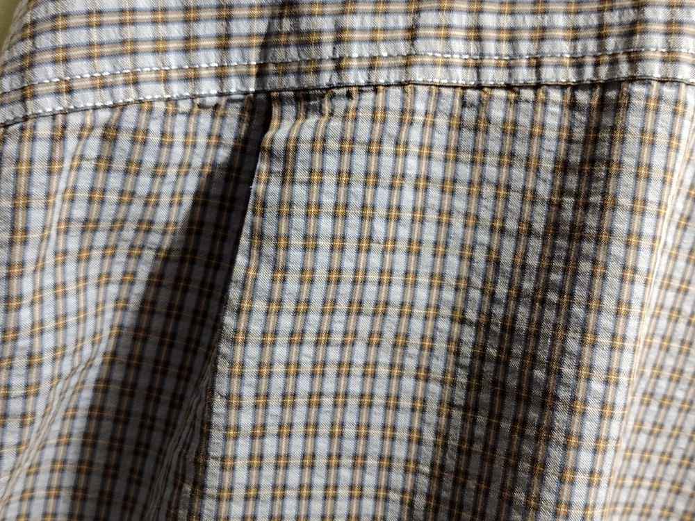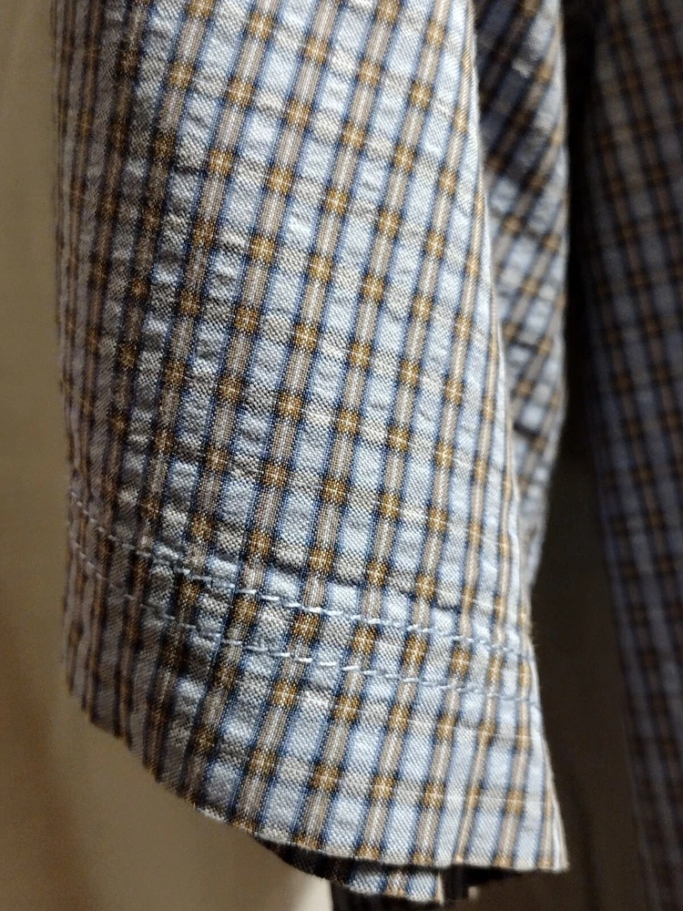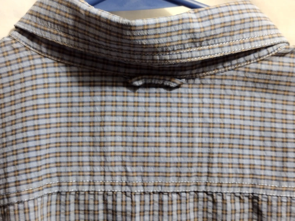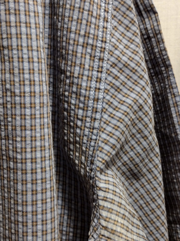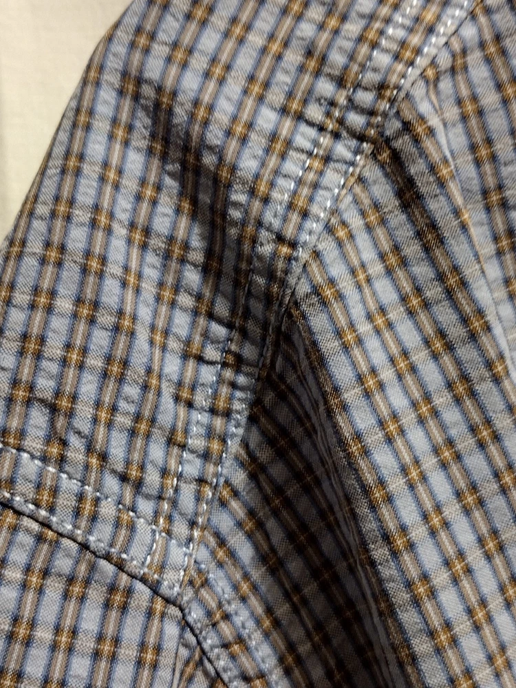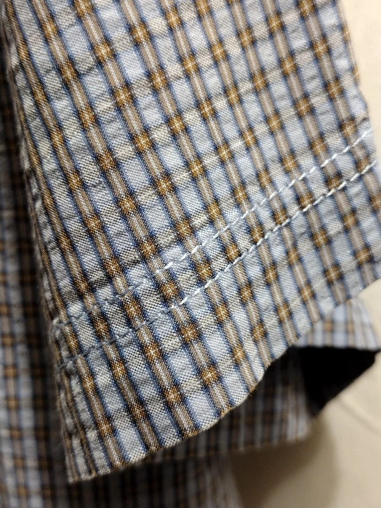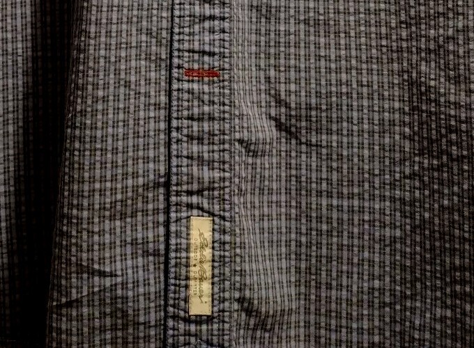 This Eddie Bauer shirt is a must-have for any fashion-forward man. Featuring a blue color and a check pattern, this shirt is perfect for any occasion, whether it's a casual day out or a business meeting. Made from a blend of polyester, nylon, and cotton, it is lightweight, packable, and stretchy, making it easy to care for and quick-drying. With a button-down collar and short sleeves, this shirt is perfect for any season, whether it's winter, summer, fall, or spring. It also features a mini check pocket and embroidered accents, adding a touch of style to an already stylish shirt. Whether you're a fan of punk, colorful, or preppy fashion, this Eddie Bauer shirt is sure to please.