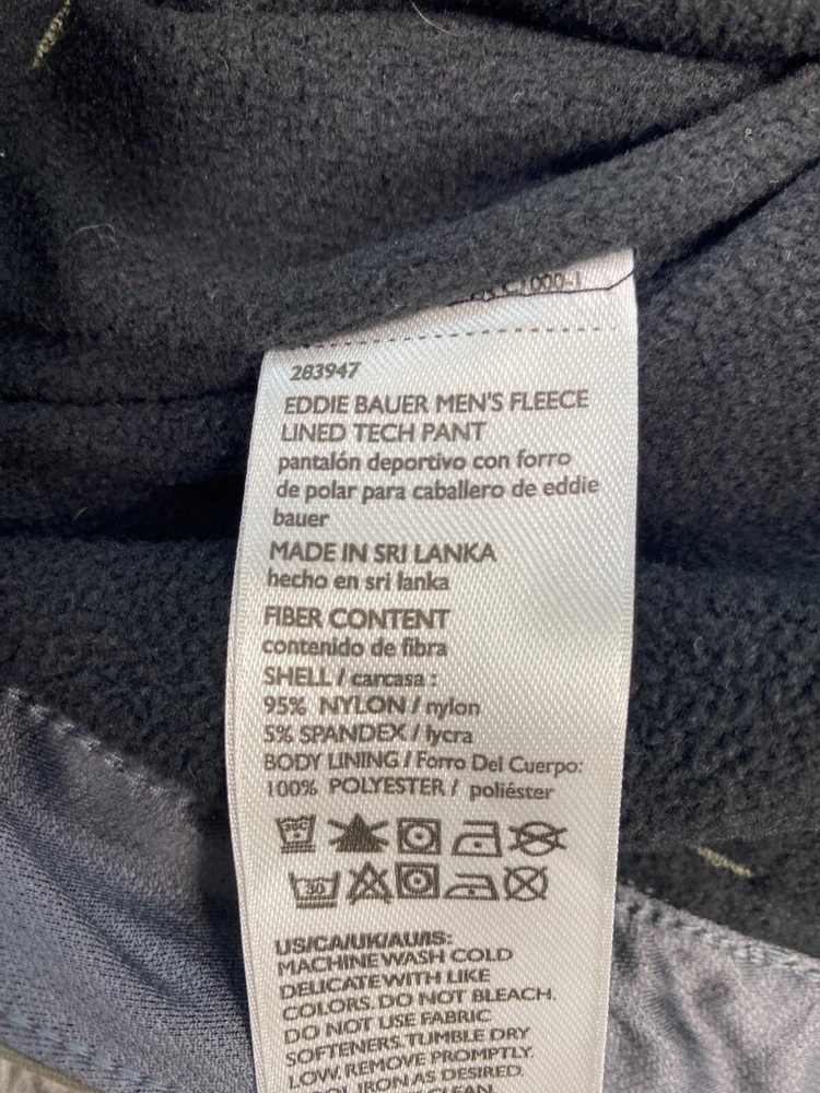 Eddie Bauer Pants Mens 38x30 Green Fleece Lined Hiking Outdoor Nylon Tech Cargo