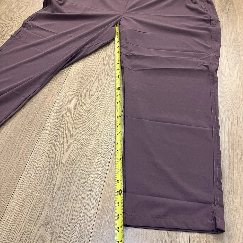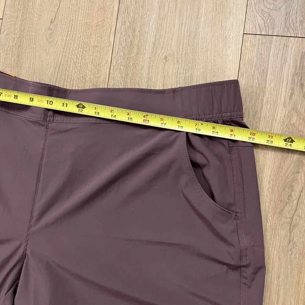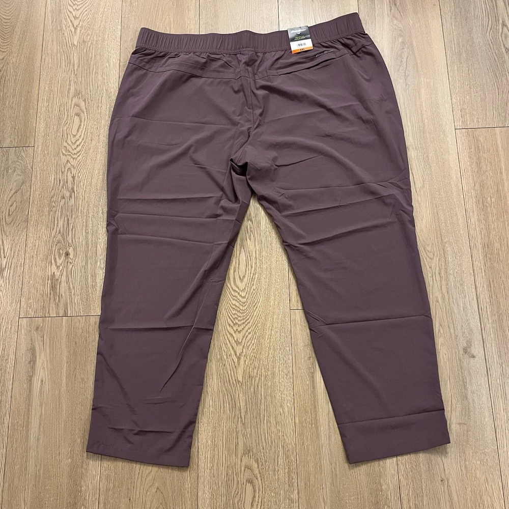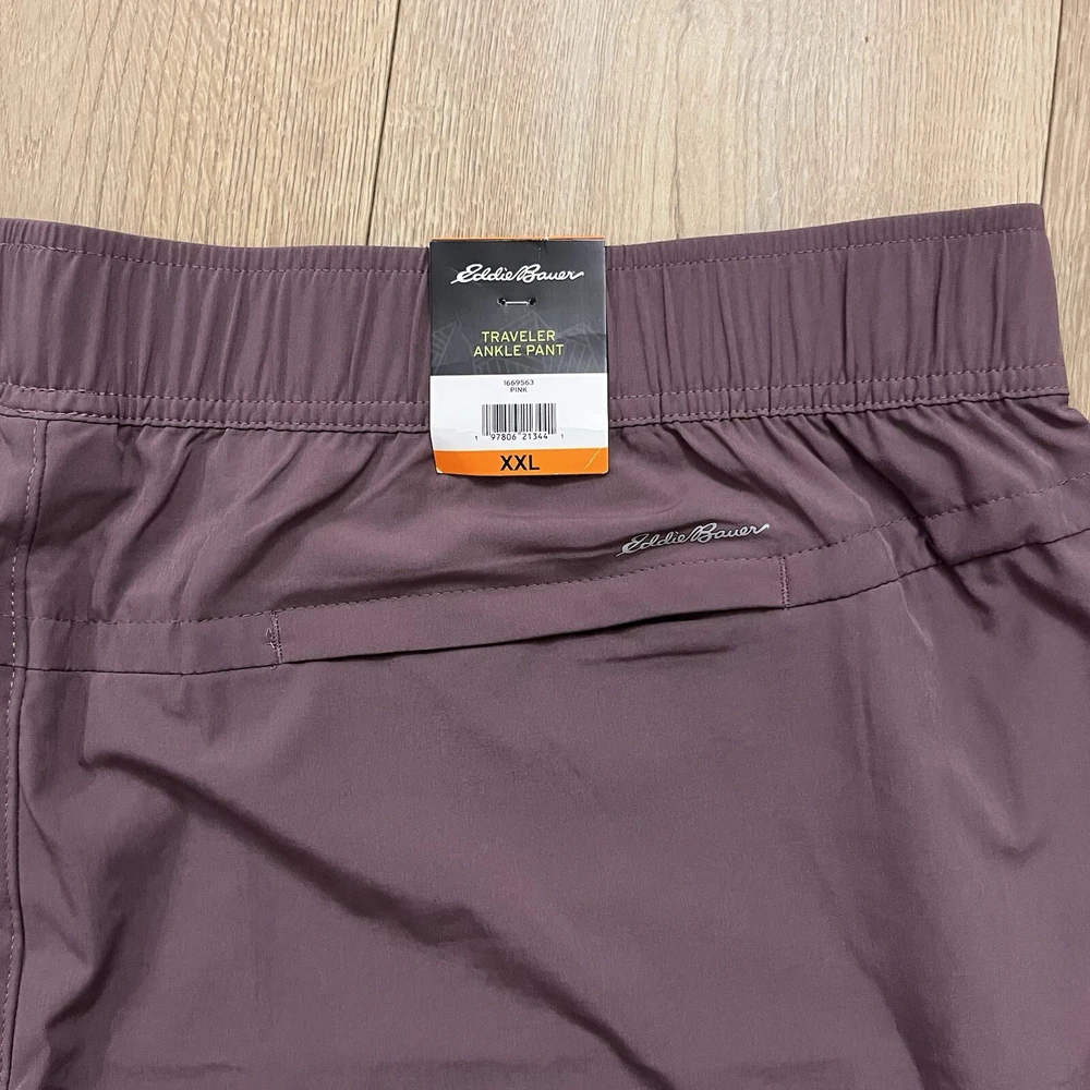 These Eddie Bauer Women's Size XXL Ankle Pants in Mauve Pink are designed for travel with a lightweight fabric blend of polyester and elastane. The pants feature a pull-on closure, solid pattern, and UPF50+ protection, making them suitable for outdoor activities in all seasons. The straight leg style and mid-rise fit offer comfort and modern style, while the waistband measures 22" across the front. Easy to care for as they are machine washable, these pants are a versatile addition to any woman's wardrobe, perfect for on-the-go adventures.