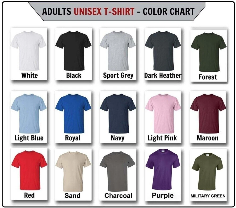 WELCOME TO OUR STORE --------- PRODUCT ---------- Cotton graphic T-shirt, custom t shirts, custom t shirt printing Lightweight, extremely comfortable and durable 100% Cotton High Quality Colors: Multicolore Size: S, M, L, XL, 2XL, 3XL, 4XL, 5XL We have a size chart in the picture, please refer to and choose the right product. ------SHIPPING-------- Every order that we receive is made at the time that we receive it which means it is custom made for you! Processing time: 2-3 business days Shipping time: 5-7 business days Thank you for choosing our products. Please feel free to message us if you have questions or concerns. ------CUSTOMER SATISFACTION-------- We try our very best to make sure every customer is completely satisfied. If there's a problem, message us! We're happy to help. If you like other colors and sizes please contact with us. We have color white, blue, green, ice grey, red, navy, charcoal, sport grey. Please explore our gallery dept t shirt to find the product you want. ------- Thank You!--------