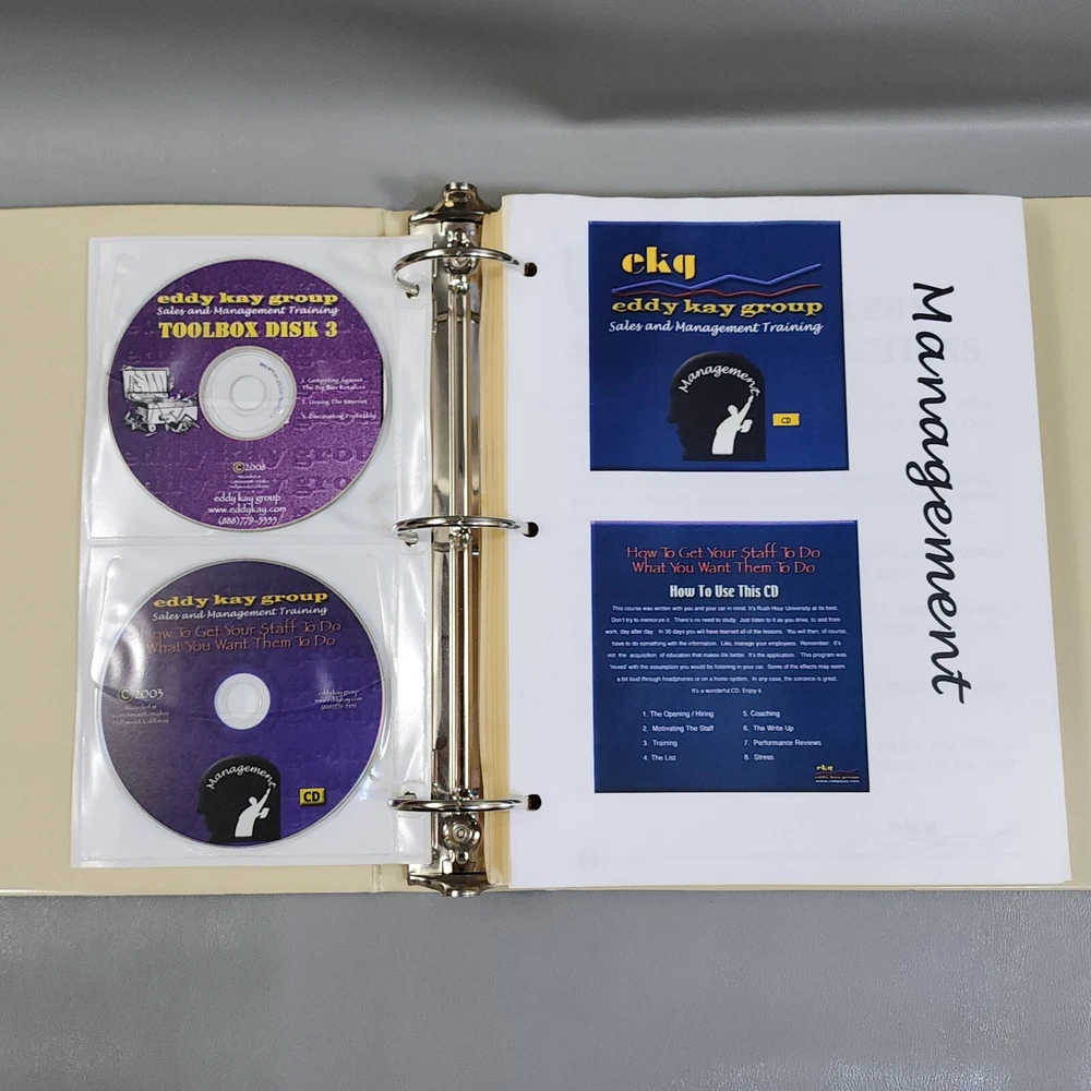 Eddy Kay Toolbox Car Audio Sales Training Course 4 Audio CD Disc Set Study Guide When it comes to sales training in the car audio world there is one name that rises above the rest.. winner of the Mobile Electronics lifetime achievement award Eddy Kay. There is something about the way he teaches that makes it so easy and fun to learn. Maybe its his energy (its infectious), maybe its the corniness that makes you laugh and have fun while your learning, no matter what it is this course is a blast. The best part is, it works! Listen, learn, put it in to action, and there is no doubt this course can change your career and life. Its bee several years since I went through any of the material in the toolbox but I found myself reading page after page while doing this listing. The one thing that stood out to me was how relevant the material is today. I thought it was as relevant as it could be almost 20 years the first time I went through it but it actually seems more relevant today with the lack of customer service in the retail world. Eddy Kay Toolbox Selling On Purpose Sales training course Written and developed by Eddy Kay Includes: 3- Audio CDs sales training 1- Audio CD management training/leadership 176 page workbook 1- Binder Made in the USA Packed well and shipped out quickly Thank you!!