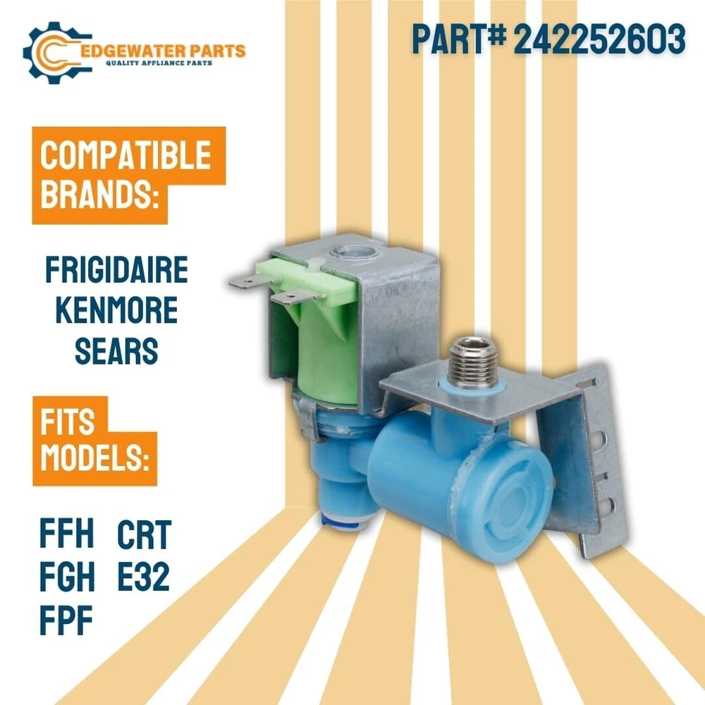 Brand Edgewater Parts Product Dimensions 4"D x 4"W x 4"H Capacity 20 Fluid Ounces Wattage 10 watts Voltage 120 Volts About this item Edgewater Parts brand is compatible with major brands, but you should always check your model to verify compatibility. Replaces: 241803703, 218475600, 218720400, 240380301, 24519601, 241803701, 2705494, #5303289068, #5303304971, 724180370. Before installation, turn off the power and water supply of the refrigerator and follow the instructions for installation. Backed by warranty for added peace of mind, providing assurance for buyers regarding its quality and longevity.