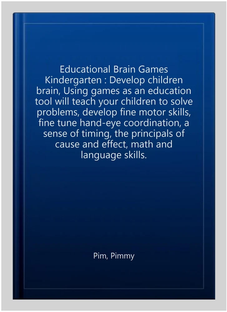 Educational Brain Games Kindergarten : Develop children brain, Using games as an education tool will teach your children to solve problems, develop fine motor skills, fine tune hand-eye coordination, a sense of timing, the principals of cause and effect, math and language skills., Paperback by Pim, Pimmy, ISBN 154692017X, ISBN-13 9781546920175, Like New Used, Free shipping in the US Brain game kidsGame can be used as an education tool that will teach your children to solve problems, develop fine motor skills, fine tune hand-eye coordination, a sense of timing, the principals of cause and effect, math and language skills. The bonus is that they will be having so much fun that the learning aspect will go unnoticed and will be parents and adults can join in the fun while at the same time unobtrusively monitoring to see if there are areas that need special is very important to incorporate brain games into their daily activities. Research has shown that consistency is the key to get to the full benefits of brain training and will result in long term and lasting is so interesting to note that the results of brain training in children is longer lasting than the results for brain training in adults. It seems that retention and the ability to embed knowledge into long term memories happens automatically in children where more effort and replication are needed for adults.