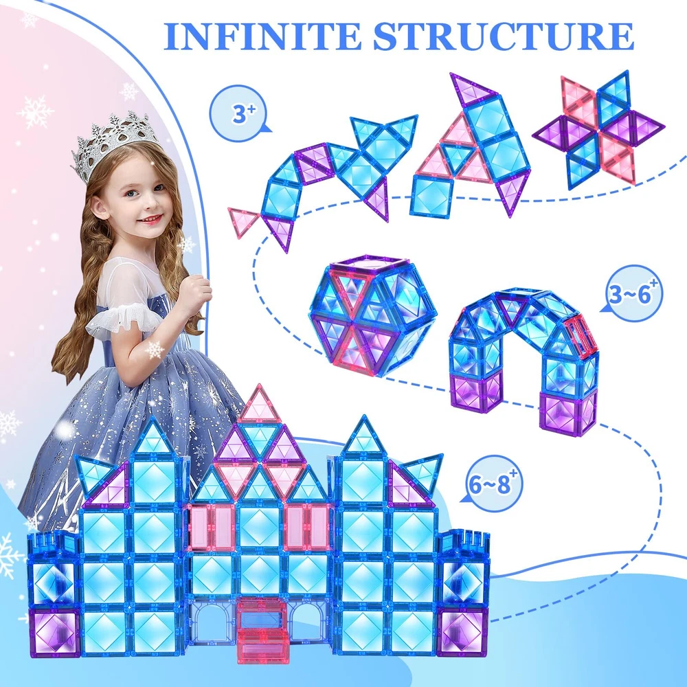 【SAFE DURABLE and STRONG MAGNET】 Zerxona blue magnetic building blocks toys for kids aged 3 4 5 6 7 8+ are made of high-quality non-toxic ABS material and super strong magnets. The edge of the magnetic tiles is more rounded and smooth, Highly recommended for 3-5 and 4-7 year old kids. 【STEM and PRESCHOOL TOYS】 These blue magnet tiles toys for toddlers 3-5 4-6 are the best choice for education and learning. Magnetic STEM toys can help teach kids valuable 3D spatial thinking, math, art, and tactile motor skills, and develop color recognition. The magnetic building Blocks toys for toddlers aged 3 4 5 6 7 8+ also rustle like little bells while playing with them, which will attract toddlers' attention and delight them. 【STEPPED UP TODDLER CREATIVITY】 The blue magnetic blocks toddler toys for children aged 3-4 and 4-8 stick together and what makes kids unique are hidden magnets for safe construction, increasing building possibilities for all ages. So even the ages of 3 4 5 6 7 8+ can imagine and create the buildings of their dreams. 【GREAT GIFTS】 The Blue magnetic tiles toys make great Christmas and Birthday gift toys for 3 4 5 6 7 8+ years old boys and girls. Let's invite our kids into a world of discovery with a set of building toys for kids ages 4-8 and 4-7. 【SATISFACTION GUAANTEED】 Our service concept concentrates on CUSTOMER FIRST. If you have any questions about your purchase or our service, please feel free to contact us, and we will provide a replacement service or refund service for you!