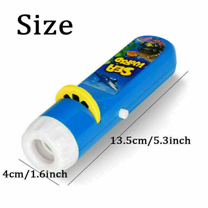 Educational Learning Toys for Kids Toddlers Age 3 4 5 6 7 8 Years Old Boys Girls Feactures: 【24 pictures and 1 set of themes】 This have six themes to choose from:under the sea, unicorn . mermaid .animal dinosaur. space etc. 【Safe and high quality materials】Made of high quality ABS environmentally friendly non-toxic materials, and the smooth edges will not harm the children's small hands.(AA Batteries are not included) 【Adjustable Focal Length】Slide the lens to adjust the sharpness,It is recommended to use a dark room with a projection distance of 50-150 cm to create clear and precise images. 【Early Learning Toys & Sleeping Story】Let children know optical common sense. Learning while playing, stimulate the child's curiosity and imagination. 【Best Gift】 Is kids' favorite Christmas / holiday / birthday gift. Specification: Name: Projection Flashlight Material: plastic Power:<1mW Size: 5.3 *1.37 inches /13.5*3.5cm Themes:unicorn, underwater world, space series, mermaid,animal ,dinosaur, space ,etc. Number of projection patterns: 24 Power supply: 2PCS × AA batteries (not included) Contains: 1X Projection Flashlight 3 X Projection Wheel