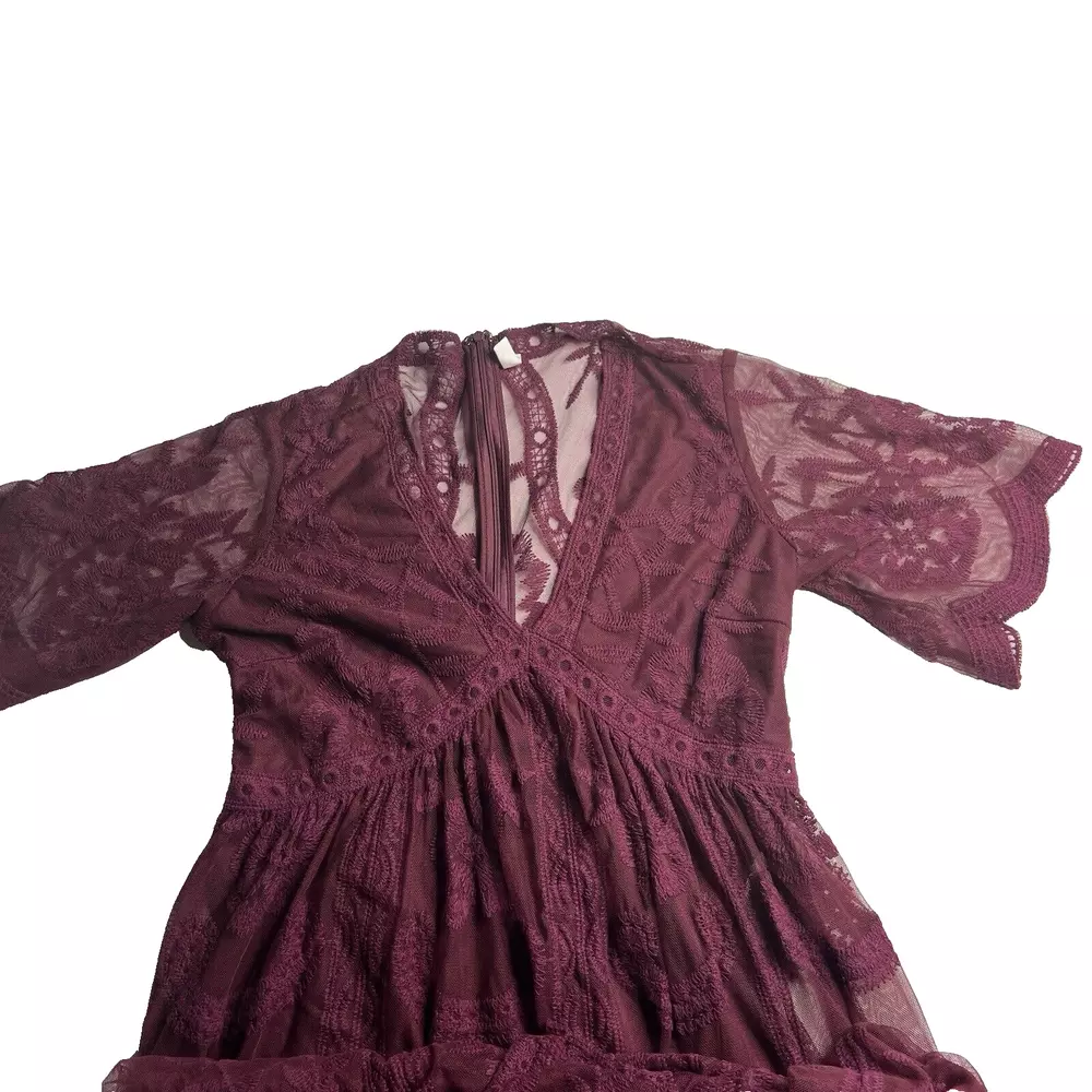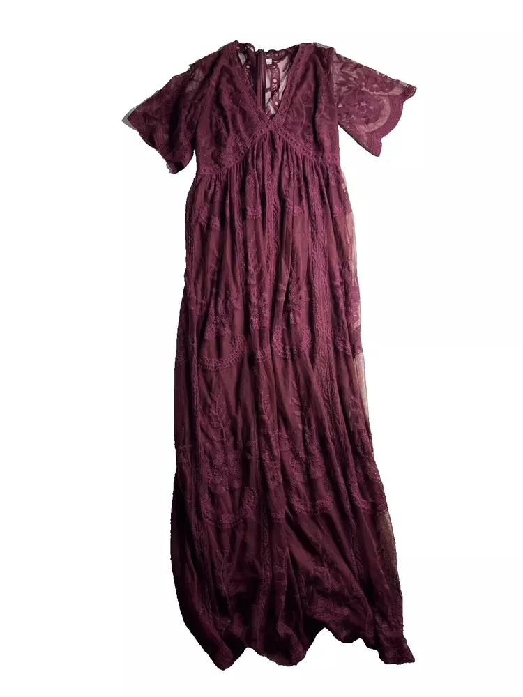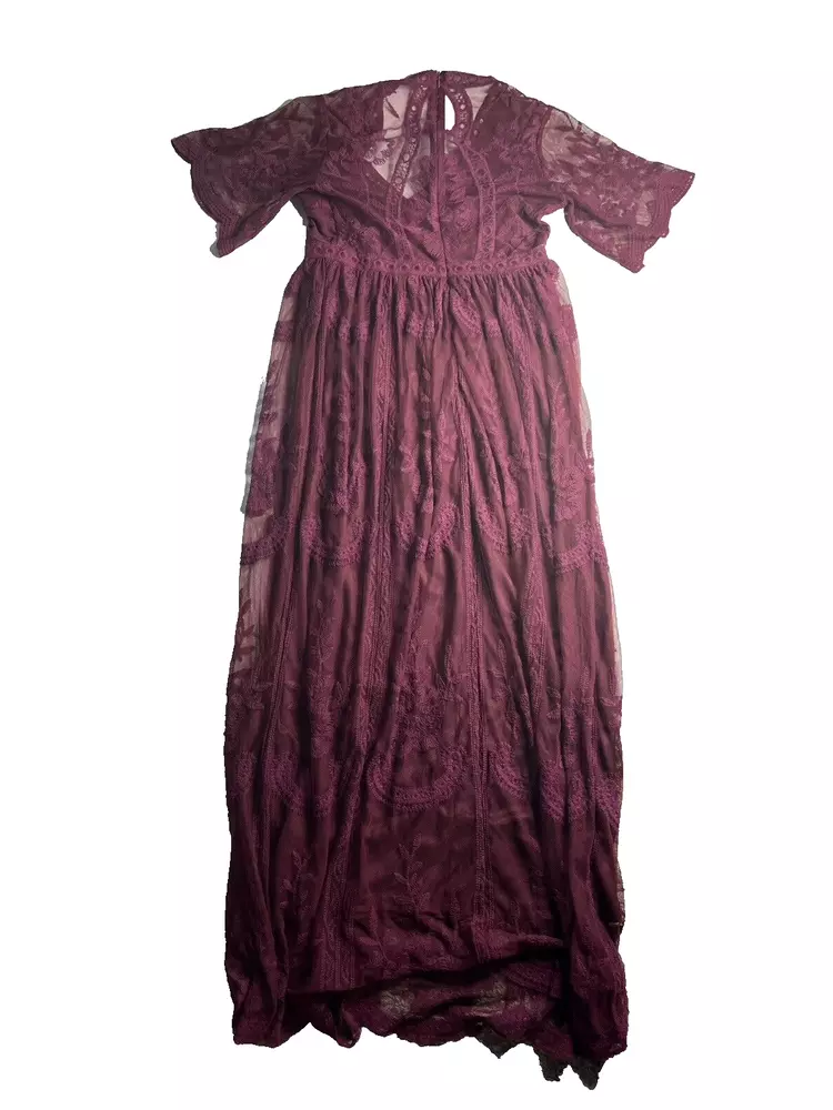 Edwardian Victorian Romantic Maxi Plum Dress Women Small Embroidery Whimsigoth Good used condition! Please view photos for measurements.