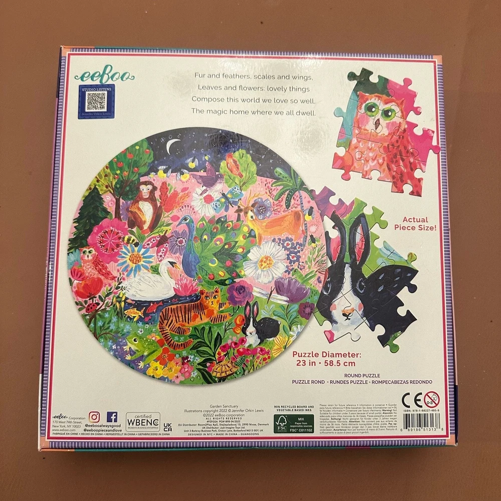 Eeboo 500 Piece Round Puzzle Garden Sanctuary Flowers Floral Complete! Put together just once. Sooo pretty and very fun to do!