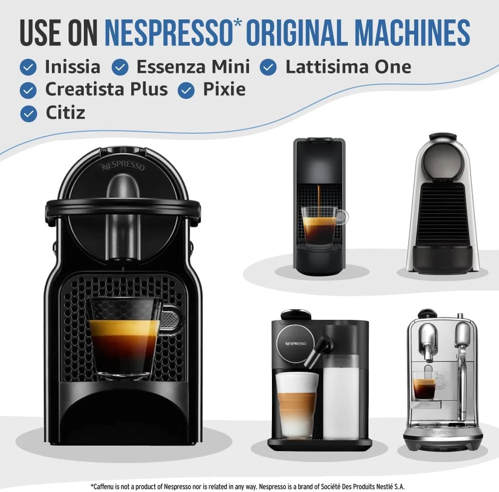 Nespresso Compatible Descaling Kit & Cleaning Pods. 2 Use Descaling Solution & 4 Cleaner Pods. Removes Limescale & Cleans Pod Area. Better Tasting, Hotter Coffee. Nespresso Originaline. Product Details Package Dimensions : 5.51 x 4.02 x 2.2 inches; 6.46 ounces Item model number : TM-CFCK-NC01 Material Feature : Biodegradable Warning Manufacturer : Caffenu Brand: Caffenu Item Form: Capsule Scent: Espresso Specific Uses For Product: Coffee Machines Material Feature: Biodegradable CLEAN YOUR MACHINE & EXTEND ITS LIFE: Our Concentrated Descaling Solution Formula removes limescale and mineral deposits from your machine to maintain its internal components so it runs smoothly for a long time; It also prevents corrosion; It is compatible with Nespresso Originaline Machines; Not compatible with Vertuo Line machines ☕ IMPROVES TASTE: Have your coffee and teas tasting better by cleaning your beverage appliances USE IT IN ALL TYPES OF COFFEE MACHINES, KETTLES & URNS: Use this descaling solution in any brand or type of coffee or espresso maker; It's great as a Keurig descaling solution and compatible with ALL single-use coffee & espresso machines! It's also compatible with kettles and electric water heaters A MORE POWERFUL DESCALING FORMULA: Our Coffee Machine Descaler has a higher concentrarion of active ingredient which makes it more Powerful and effective in reaching the critical components of your coffee or espresso machine and getting rid of all calcium deposits; This concentrated descaling solution is made of plant-based Lactic Acid which makes it great for the environment; It will restore the performance of your machine; Exceeding the cleaning performance of other formulas