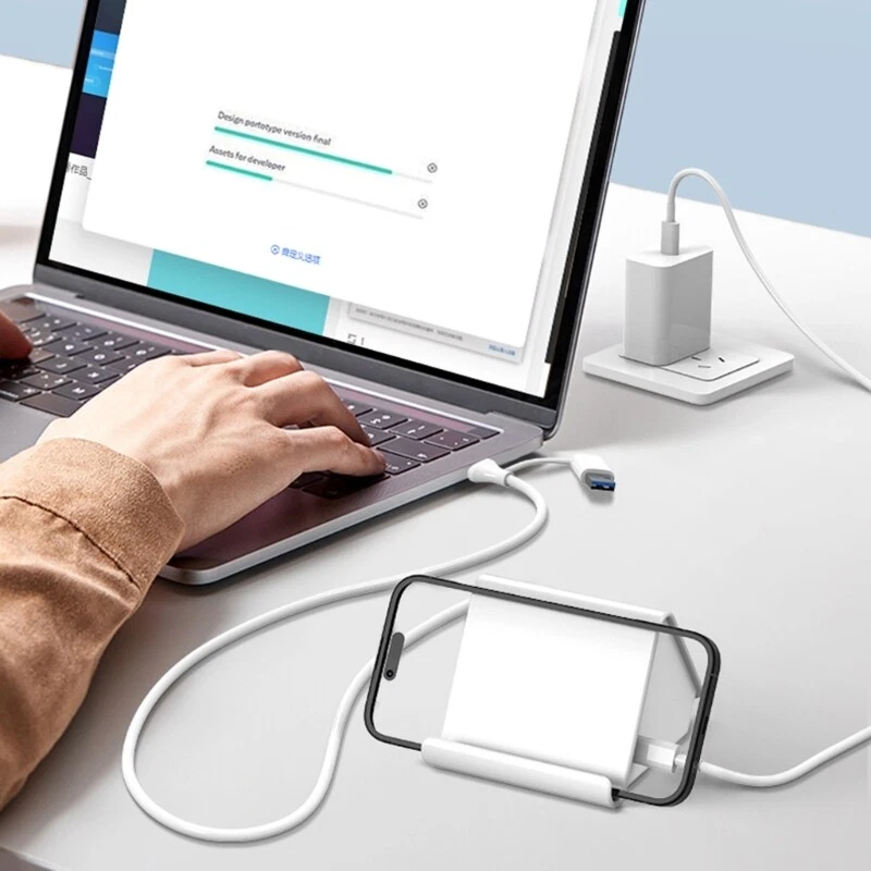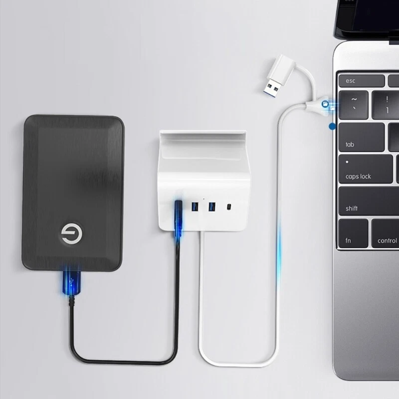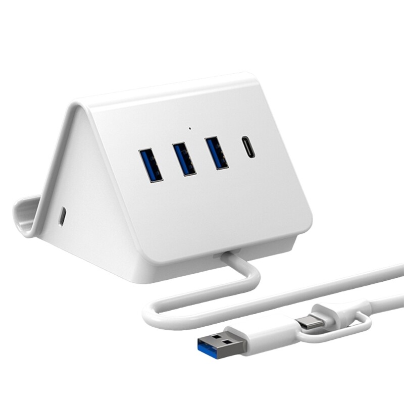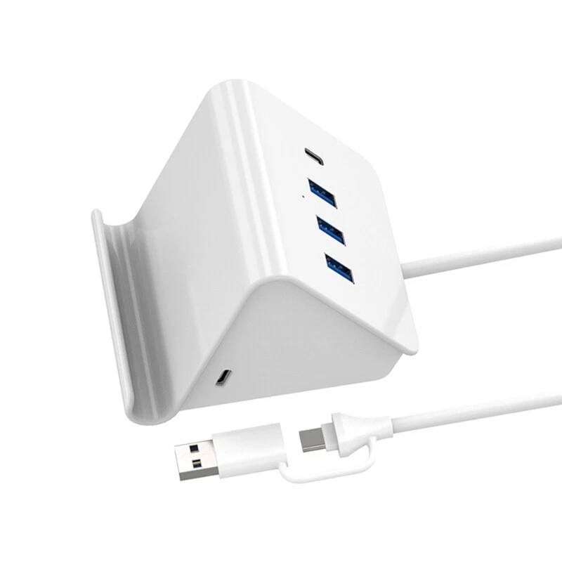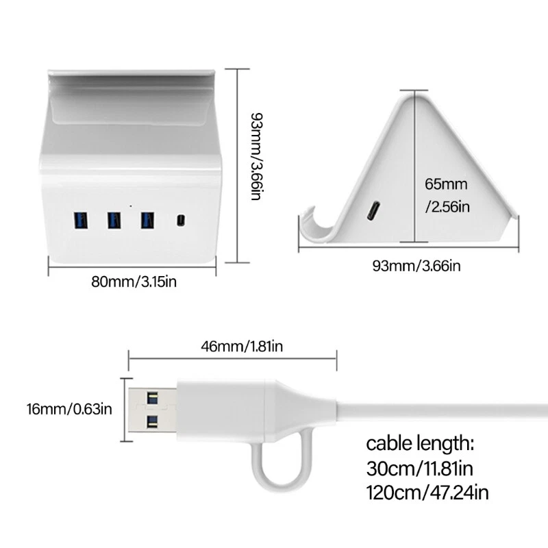 Features: Enhancing your connection with our USB3.0 Hub Stand, featuring three USB3.0 port and a Type C port, perfectly for expanding the capabilities of your laptop, desktop, smartphone, tablet, or gaming consoles. This hub offers fast speed data transfer and includes a convenient phone stand designing, freeing up your hands while providing a Type C power input option with cable lengths of 30cm or 120cm. For gamers, and anyone needing efficient device connection and organization in their work space. Perfectly for home offices, gaming setups, this USB hub ensures you stay connected and productive wherever you like. From durability plastic, this USB hub is to meet all your needs, making it essential accessory for modern digital lifestyles. Specifications: Item: USB3.0 Hub Stand Support: 3xUSB3.0 and Type C Speed: 5Gbps Fast speed data transfer Cable length:about 120cm/47.24in 30cm/11.8in Optional Adapter Size:about 93x80x65mm/3.66x3.15x2.56in Component: Plastic Package Includes: 1PC USB3.0 Hub Stand note: Due to problems of lighting effects there will be certain tolerances in product, please understand. Please allow 0-1cm error due to manual measurment.