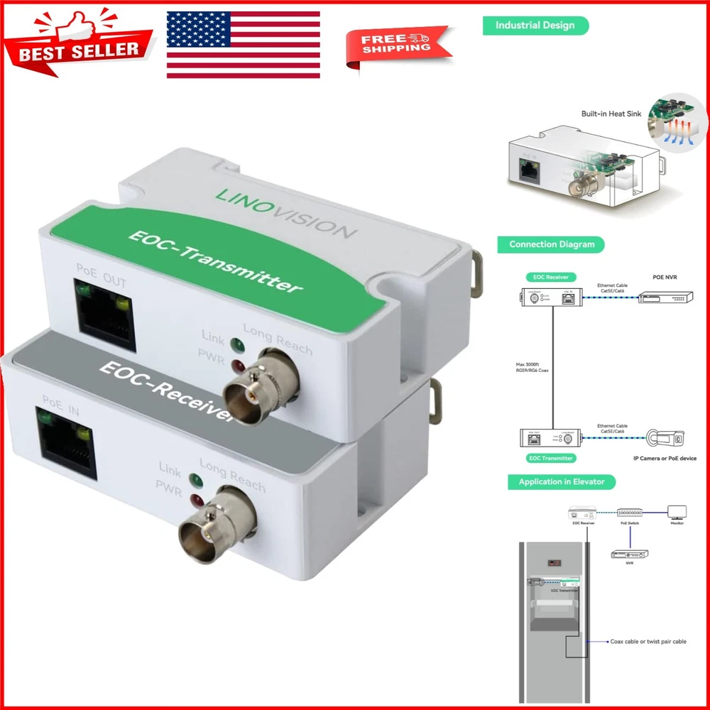 Effortless IP System Upgrade: POE Over Coax Converter with Built-In Heat Sink ‹ › ‹ › ‹ › ‹ › ‹ › ‹ › ‹ › ‹ › ‹ › ‹ › Effortless IP System Upgrade: POE Over Coax Converter with Built-In Heat Sink Transform your analog surveillance setup into a state-of-the-art IP system with our premium EOC & POE Converter. This device redefines convenience, reliability, and versatility. With effortless installation and support for existing coaxial cables, upgrading your CCTV system has never been simpler. Key Features: Seamless Integration: Upgrade your surveillance system using RG59, RG6, RG11 cables, while supporting POE standards 802.3af (PoE) and 802.3at (PoE+). Versatile Connectivity: Each EOC converter includes dual BNC to Twist Pair connectors, enabling POE transmission over twisted pair cables. Optimal Performance: Supports 100Mbps bandwidth over 330ft of regular twisted pair cables and 10Mbps over 1485ft for both POE and NON-POE devices. Industrial Design: The integrated heat sink guarantees exceptional reliability and minimizes transmission hassles. (Indoor use ONLY) Point-to-Point Connection: Acts as MoCA for video/audio/data/control signal transmission, targeted specifically for coaxial or twisted pair connections. Effortless Setup: Enjoy plug-and-play convenience with no configuration required—simply connect your devices and experience seamless operation. Important Consideration: For multiple PoE over coax applications, especially in one system, use the EOC-Switch KIT (ASIN: B0BMG63JZ6) to avoid interference. Why Choose Our Converter? Upgrade with confidence knowing your traditional surveillance setup can enhance further without the expense and hassle of rewiring. Enjoy flexibility in your installations, from CCTV systems in hard-to-reach areas like elevator carts to other POE devices. No technical expertise? No problem! Our plug-and-play system is designed for everyone—whether you're a professional technician or a DIY enthusiast. Make the smart choice for your surveillance needs! Unlock the potential of your surveillance system today with our Effortless IP System Upgrade Converter! Shipping Free & Fast Shipping - We offer free shipping to most of the USA with a normal delivery time of 3-7 days. However, due to the current situation, additional delivery time (up to 3 weeks) may be required for some items. Alternative Carriers - We may use alternative carriers (e.g. USPS, FedEx, UPS, etc.) to ensure your package arrives safely and on time. Due to the use of multiple carriers, we are unable to provide a tracking number automatically. Handling Time - Orders are processed and shipped within 1-2 business days of receiving cleared payment. Shipping Restrictions - Shipping to Alaska, Hawaii, Puerto Rico, Guam, and other US territories may incur shipping charges or delivery restrictions. Please contact us before ordering, or your order can be refunded/cancelled. State Restrictions - There may be restrictions based on your state of purchase. For example, certain items may not be shipped to California due to state regulations. Contact for Tracking Updates - If you require tracking updates or have any concerns about the delivery of your order, please feel free to contact us, and we will be happy to assist you. Return 30-Day Hassle-Free Returns - We want you to be completely satisfied with your purchase. If you are not, you can return the item within 30 days of receiving it for a full refund or exchange. Easy Return Process - To start a return, simply contact us and we will provide you with a prepaid return shipping label and detailed instructions. Restocking Fee - There are no restocking fees for returns. However, the buyer is responsible for return shipping costs if the return is not due to a seller's error. Refund Processing Time - Refunds will be processed within 5 business days of receiving the returned item in its original condition. Payment We accept all major credit cards, PayPal, and Apple Pay for your convenience. Your payment information is secure and encrypted to ensure a safe and seamless transaction. Please complete your payment within 3 days of purchase to avoid any delays in shipping. Feedback Your feedback is extremely important to us. We strive to provide the best products and customer service possible. If you are satisfied with your purchase, please take a moment to leave us a positive review. If you have any concerns or issues with your order, please contact us before leaving negative feedback. We are committed to resolving any problems and ensuring your satisfaction. Contact Us If you have any questions or concerns, please feel free to reach out to our customer support team. You can contact us through the eBay messaging system. We are available Monday to Friday, 9:00 am to 5:00 pm EST, and we will do our best to respond to your inquiry within 24 hours. Buy it now and enjoy a pleasant shopping experience! UPC: Not Set Unit Quantity: 8.8 oz Features: Plug-in,Point to Point Connection,Configuration Free,Upgraded,POE & IP OVER COAX Converter,Support for RG59, RG6, RG11,100Mbps bandwidth over 330ft,Suitable for CCTV system in elevator cart,Industrial design,Built-in heat sink,Indoor use only,Small design,Light weight,Easy installation Connectivity: BNC,Ethernet,Twist Pair Smart Home Compatibility: VoIP devices,CCTV systems,kameras,VoIP,Wi-Fi AP Smart Home Protocol: Power over Ethernet (PoE),PoE Storage Capacity: Not Set Items Included: 1,EOC Receiver,EOC Transmitter Power Source: Power over Ethernet (PoE),POE Switch,POE Injector Year Manufactured: Not Set Operating Range: Not Set Brand: Unbranded Model: POE Over Coax Converter Type: Converter Surveillance Technology: Ethernet over Coax Location: Indoor Only Maximum Resolution: Not Set MPN: Not Set Operating Sound Rating: Not Set Power: Not Set Unit Type: oz Number of Cameras Included: Not Set Number of Channels: Not Set Color: White Item Height: Not Set Item Width: Not Set Voltage: Not Set Cou