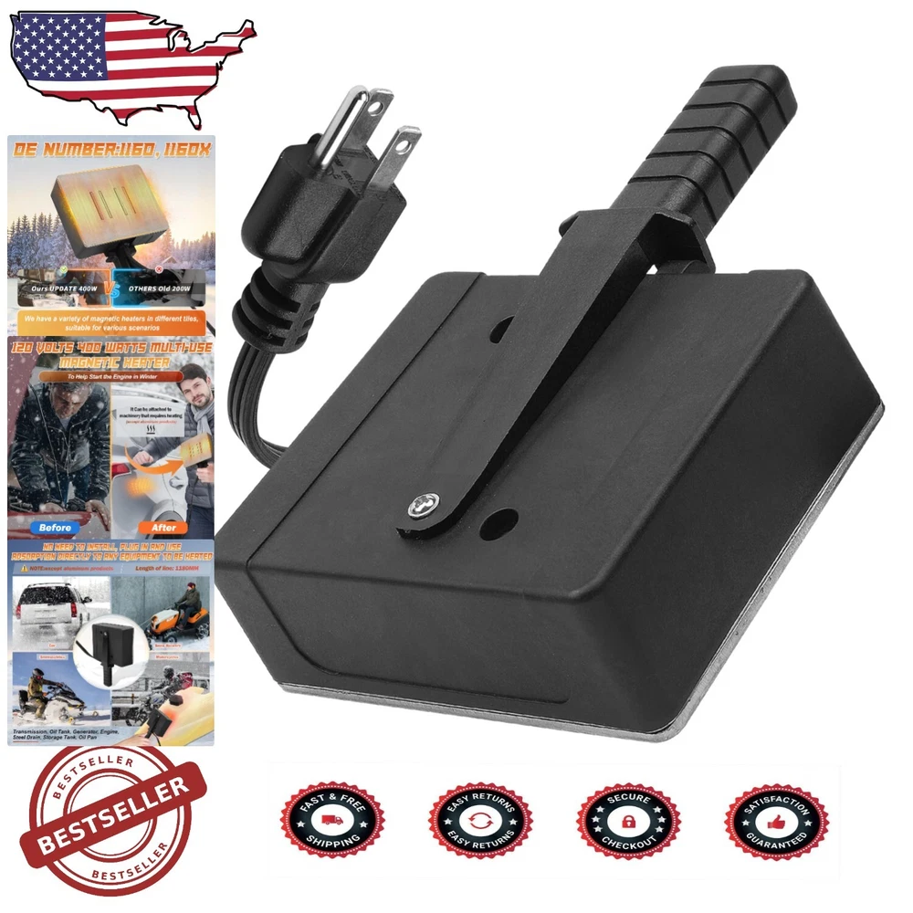 Effortless Magnetic Engine Heater 120V, 400W with Internal Thermostat for Safety ‹ › ‹ › ‹ › ‹ › ‹ › ‹ › ‹ › ‹ › ‹ › Effortless Magnetic Engine Heater 120V, 400W Equipped with Internal Thermostat for Safety Features: Wide Range of Use Scenarios: Perfect for heating large or small (non-aluminum) engine blocks in a variety of vehicles and equipment, including tractors, snowmobiles, motorcycles, snow blowers, generators, and farm equipment. Smart and Secure: Safety is our top priority. The heater features an internal thermostat that automatically disconnects at 130°C to prevent overheating and resumes heating when the temperature drops to 60°C. Effortless Installation: The robust magnetic base ensures a secure attachment to metal surfaces, eliminating complicated mechanical installations for a hassle-free experience. Premium Craftsmanship: Crafted from durable materials with a practical grip to protect your hands from heat, ensuring comfort and reliability even in demanding conditions. User-Friendly Installation: The magnetic design allows easy attachment to oil pans, engine blocks, or battery holders, making it versatile for various applications. Convenient 43-inch Power Cord: The flexible 43-inch (110cm) power cord allows for effortless positioning while keeping a safe and reliable connection to your power source. Benefits: Dependable and efficient heating for optimal engine performance. Enhanced safety with automatic temperature regulation. Easy to set up and use, saving you valuable time. Built to withstand harsh conditions with strong magnetic hold. Versatile application across various vehicles and equipment. Why choose our Effortless Magnetic Engine Heater? Transform the way you maintain your vehicles and equipment with the Effortless Magnetic Engine Heater. Designed for versatility and safety, it expertly heats non-aluminum engine blocks, ensuring optimal performance even in the harshest conditions. With its robust magnetic base, user-friendly installation, and internal thermostat, this heater offers unparalleled convenience and reliability. Invest in precision and peace of mind – choose our Effortless Magnetic Engine Heater for all your heating needs! Shipping Free & Fast Shipping - We offer free shipping to most of the USA with a normal delivery time of 3-7 days. However, due to the current situation, additional delivery time (up to 3 weeks) may be required for some items. Alternative Carriers - We may use alternative carriers (e.g. USPS, FedEx, UPS, etc.) to ensure your package arrives safely and on time. Due to the use of multiple carriers, we are unable to provide a tracking number automatically. Handling Time - Orders are processed and shipped within 1-2 business days of receiving cleared payment. Shipping Restrictions - Shipping to Alaska, Hawaii, Puerto Rico, Guam, and other US territories may incur shipping charges or delivery restrictions. Please contact us before ordering, or your order can be refunded/cancelled. State Restrictions - There may be restrictions based on your state of purchase. For example, certain items may not be shipped to California due to state regulations. Contact for Tracking Updates - If you require tracking updates or have any concerns about the delivery of your order, please feel free to contact us, and we will be happy to assist you. Return 30-Day Hassle-Free Returns - We want you to be completely satisfied with your purchase. If you are not, you can return the item within 30 days of receiving it for a full refund or exchange. Easy Return Process - To start a return, simply contact us and we will provide you with a prepaid return shipping label and detailed instructions. Restocking Fee - There are no restocking fees for returns. However, the buyer is responsible for return shipping costs if the return is not due to a seller's error. Refund Processing Time - Refunds will be processed within 5 business days of receiving the returned item in its original condition. Payment We accept all major credit cards, PayPal, and Apple Pay for your convenience. Your payment information is secure and encrypted to ensure a safe and seamless transaction. Please complete your payment within 3 days of purchase to avoid any delays in shipping. Feedback Your feedback is extremely important to us. We strive to provide the best products and customer service possible. If you are satisfied with your purchase, please take a moment to leave us a positive review. If you have any concerns or issues with your order, please contact us before leaving negative feedback. We are committed to resolving any problems and ensuring your satisfaction. Contact Us If you have any questions or concerns, please feel free to reach out to our customer support team. You can contact us through the eBay messaging system. We are available Monday to Friday, 9:00 am to 5:00 pm EST, and we will do our best to respond to your inquiry within 24 hours. Buy it now and enjoy a pleasant shopping experience! UPC: Not Set Cable Length: Not Set Unit Quantity: 1.71 lb Power Source: Electric Mounting Location: Desk/Tabletop,Floor,Wall,Ceiling Material: Not specified,Durable Materials Control Style: None Features: Auto Shut-off,Thermostat Protection Smart Home Protocol: Not Set Smart Home Compatibility: Not Set Refrigerant: Not Set Brand: Unbranded Type: Not Set Heating System: Not specified Color: Black Voltage: 120 V Model: Not Set Number of Heat Settings: Variable BTU Heating Rating: Not Set Energy Star: Not Set Power: 400 W Annual Fuel Utilization Efficiency (AFUE): Not Set Heating Element Format: Not Set Area Covered: Not Set Heating Element Material: Not Set Item Width: Not Set Operating Sound Rating: Not Set Energy Efficiency Ratio (EER): Not Set Item Length: Not Set MPN: Not Set Item Depth: 5.6 in Tank Capacity: Not Set EC Range: Not Set Year Manufactured: Not Set Country/Region of Manufacture: Not Set Air Direction: Not Set Current Rating: Not Set Manufacturer Warra