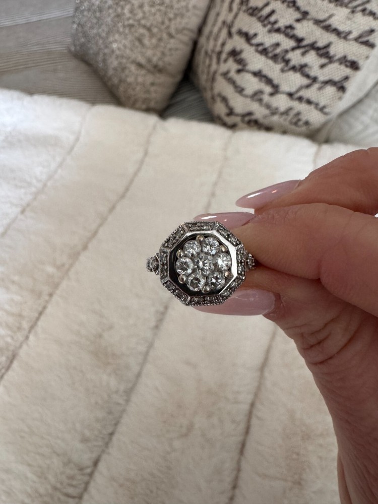 Honestly, the pictures do not do this ring justice! It is absolutely stunning and a piece that i've wanted for so long! Seller very sweet and sold this for an incredible price! Thank you!!!!! A+±+