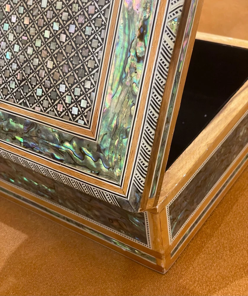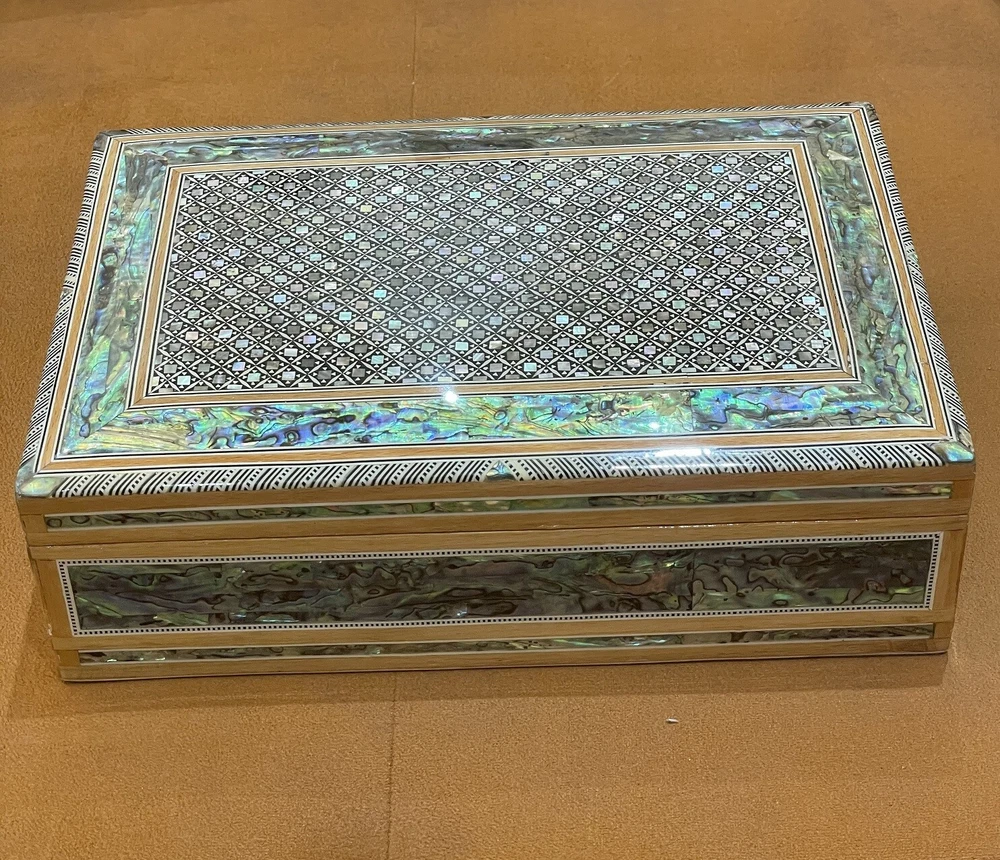 Egyptian Wood Jewelry Box Inlaid Mother of Pearl Handmade size 11.8" x 8" x 3.5" inch These boxes hand-made in Egypt by Egyptian creative Artists Using inlaid Mother of Pearl and Beech Wood Shipping via DHL Shipping Combined package : Accepted according the weight and size\ Shipping : 7 to 12 days by DHL express with track number We ship within Three business days of payment, usually sooner. Return You can return a product for up to 30 days from the date you purchased it. Any product you return must be in the same condition you received it and in the original packaging. Please keep the receipt. Payment We accept payment by any of the following methods: PayPal Please pay as soon as possible after winning an auction, as that will allow us to post your item to you sooner! Feedback Customer satisfaction is very important to us. If you have any problem with your order, please contact us and we will do our best to make you satisfied. Contact Us If you have any queries, please contact us via ebay. We usually respond within 24 hours on weekdays. Please visit our eBay store to check out other items for sale! Thank you for shopping at our store. Egyptian jewelry box , Mother of pearl jewelry box , Jewelry box