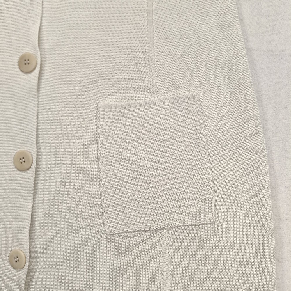 Eileen Fisher Silk Blend Long Duster Cardigan Medium Cream Button Front Pockets pit to pit 19" length 32"