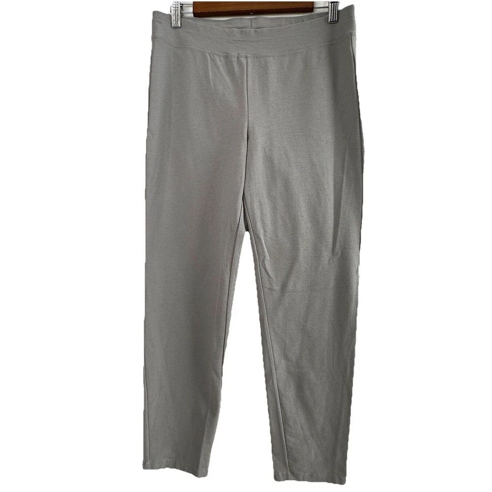 Eileen Fisher Stretch Crepe Slim Fit Pull On Ankle Pants 78121 Size Small Petite Light Gray Very good pre-owned condition. Measurements approximate laying flat: Waist 14.5" Rise 8.5" Inseam 27"