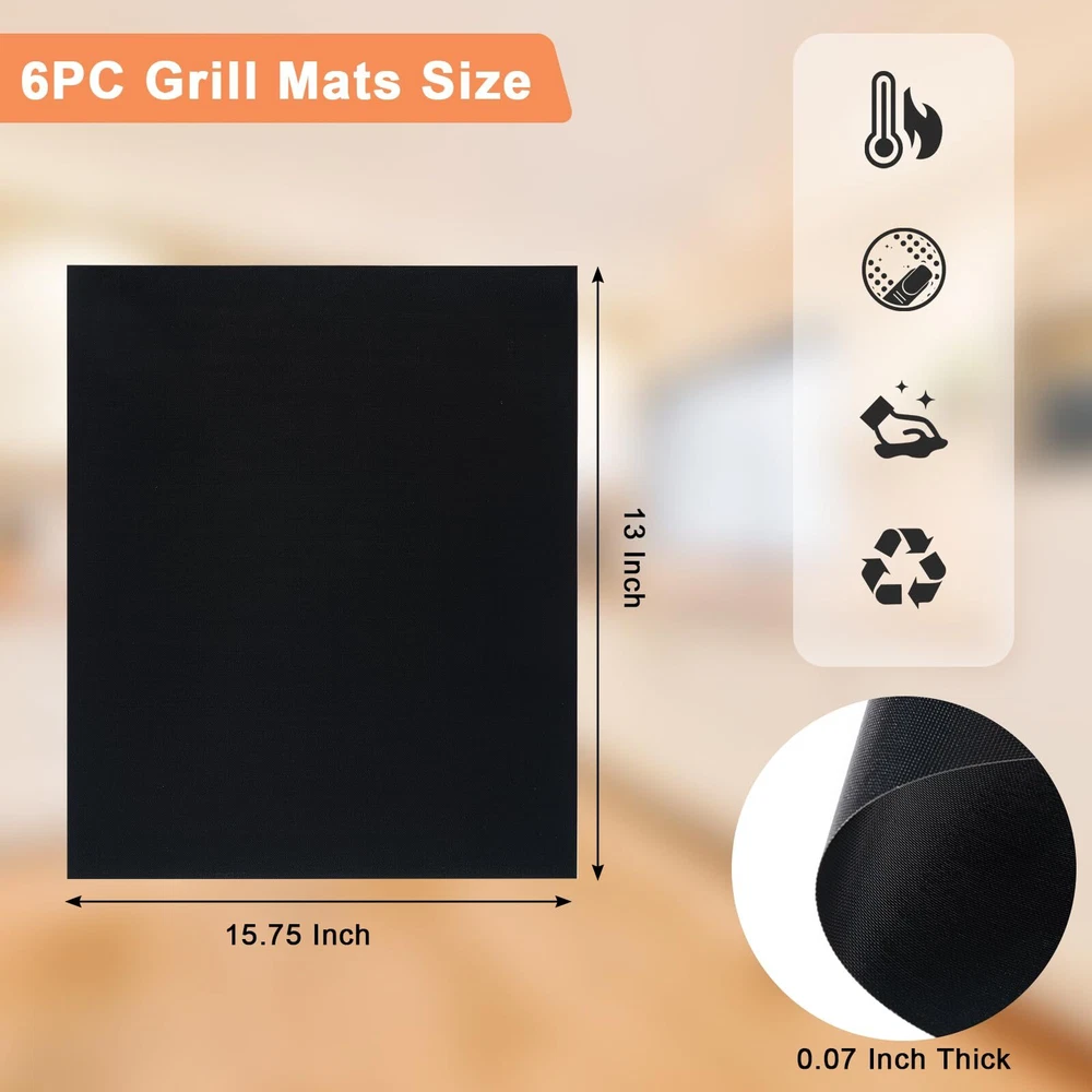 Eisinly Grill Mats for Outdoor Grill, Set of 6 Reusable Baking Mat Non Stick Hea Features: Green Materials - Eisinly grill mat for outdoor grilling is made of Teflon and high glass fibers coating, no other harmful chemicals, you can cook healthier food and fully protect the health of your family and friends. Non-Stick - The black grill mats won't stick to anything on the grill, use these grilling accessories to grill vegetables, meat, fish, shrimp and even fried eggs, bacon and pancakes to get more out of your grill. We can enjoy healthier diet Heat Resistant - Our grilling mats can withstand up to 240 degrees without burning or contracting. It locks in moisture well and retains the flavor of the grill. When grilling, the mat is very hot, so please do not touch your skin directly Reusable - The bbq mats for grilling are reusable on both sides and lay flat on the grill to keep grease and grime from sticking to the grill, ready for the next barbecue Multipurpose - Can be widely used as BBQ mats, oven bottom liners, baking mats, cooking pads. Ideal for campground or park barbecues, they are the perfect grilling companion Easy to Clean - Simply wash or wipe clean after use, no odor left behind after cleaning. So you don't have to clean dirty grills anymore, perfect for protecting your oven and grill Features: Green Materials - Eisinly grill mat for outdoor grilling is made of Teflon and high glass fibers coating, no other harmful chemicals, you can cook healthier food and fully protect the health of your family and friends. Non-Stick - The black grill mats won't stick to anything on the grill, use these grilling accessories to grill vegetables, meat, fish, shrimp and even fried eggs, bacon and pancakes to get more out of your grill. We can enjoy healthier diet Heat Resistant - Our grilling mats can withstand up to 240 degrees without burning or contracting. It locks in moisture well and retains the flavor of the grill. When grilling, the mat is very hot, so please do not touch your skin directly Reusable - The bbq mats for grilling are reusable on both sides and lay flat on the grill to keep grease and grime from sticking to the grill, ready for the next barbecue Multipurpose - Can be widely uséd as BBQ mats, oven bottom liners, baking mats, cooking pads. Ideal for campground or park barbecues, they are the perfect grilling companion Easy to Clean - Simply wash or wipe clean after use, no odor left behind after cleaning. So you don't have to clean dirty grills anymore, perfect for protecting your oven and grill eBay integration by
