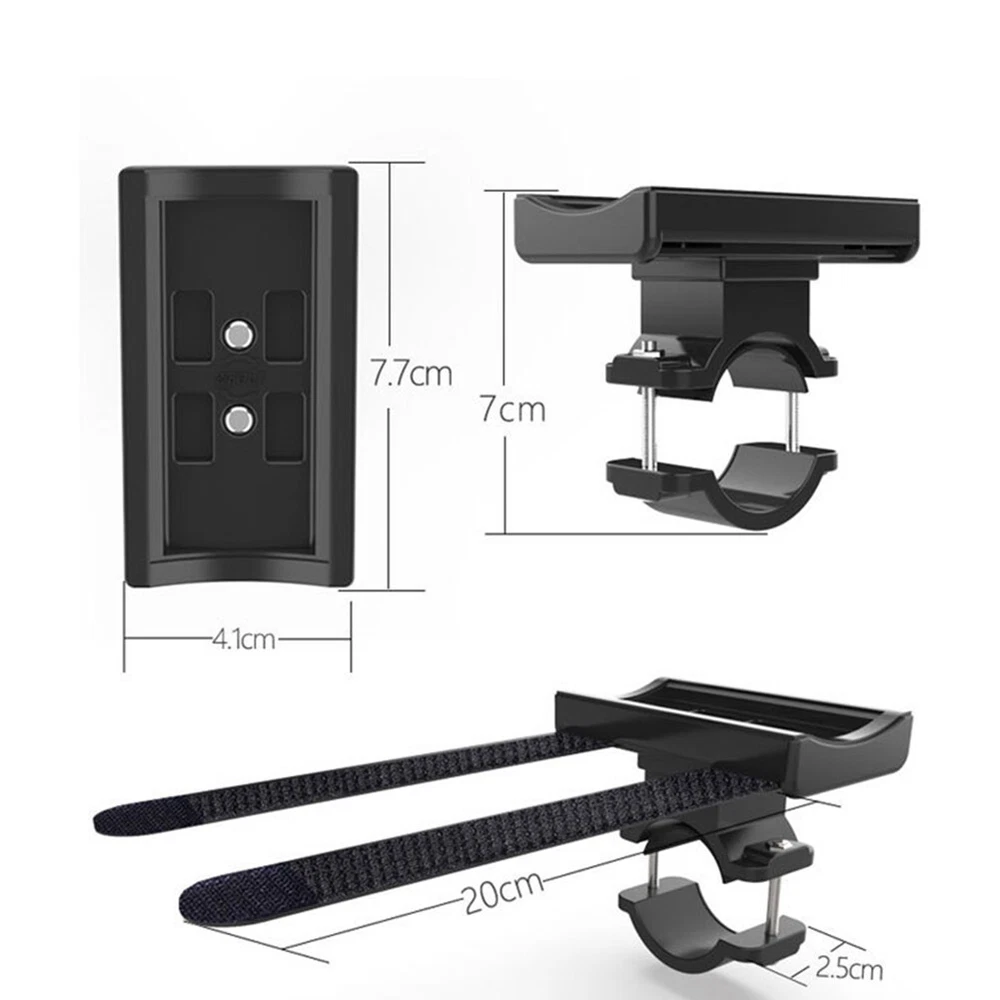 Bicycle Light Bracket Bike LED Flashlight Speaker Mount Holder with Elastic6187 and high quality Made of high quality material, and practical to use Elastic shock-proof strap design, easy to carry various body equipment, pull and press, you can fix it Simple installation of riding equipment, no special tools are required for installation and use, and the installation position can be according to the actual situation Two-point fixation, make the equipment flat and horizontal, fit closely to the bracket platform, no hard and no damage to the machine, easy to deal with various outdoor riding such as bumpy mountain roads and sudden Thickened rubber pad protection design, shockproof, non-slip, scratch-, soft rubber, soft fit, stable and not shaking Fixed screw installation, adjustable size, steel metal material, long-term use without rust, thickened ABS composite material, high hardness and high toughness, double durability According to different installation requirements, the platform can be installed horizontally or vertically, the rotation is locked with screws, and the screws can be removed when adjusting. Embedded connection design, the installation position does not need to be debugged Weight:About 60g Colour:Black Material:ABS Size:About 77x70mm Package Contents: 1 x Bicycle Light Holder
