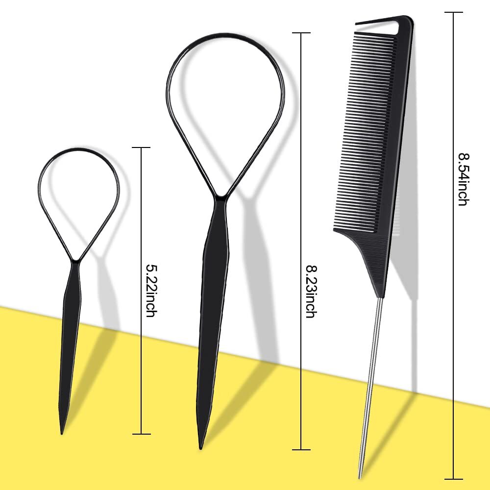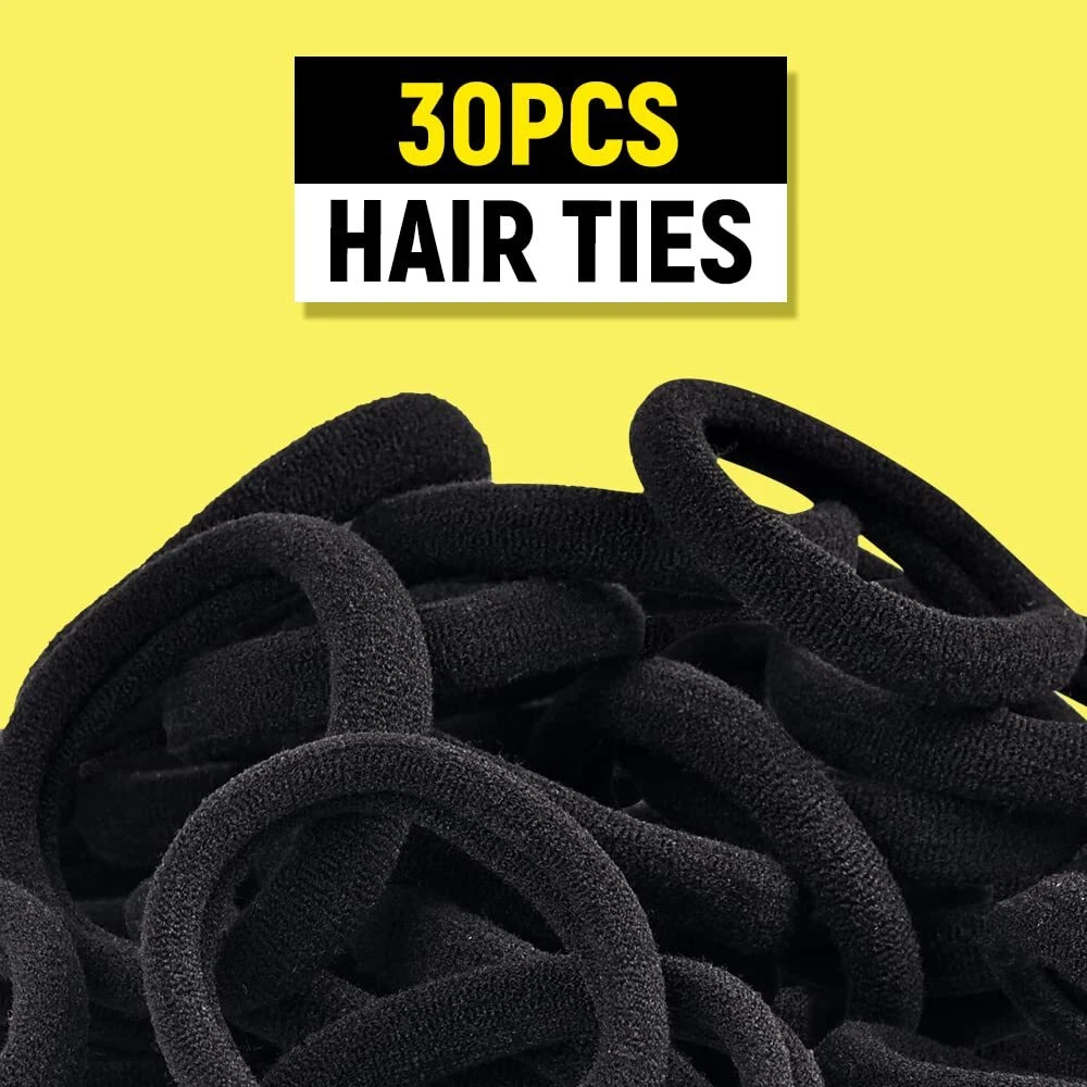 Black Hair Ties Elastic for Women Girls, TsMADDTs Hair Bands Set with 30Pcs Bla Features: BLACK HAIR BANDS SET: Package includes 30Pcs black cotton seamless hair ties, 500pcs Mini Hair Rubber Bands, a pair of topsy tail tools and 1pcs rat tail comb, organized in a clear box. The bands set are good for girls different hairstyles, hair design, curls, ponytails, braiding, wedding hairstyle, party or DIY more charming hairstyles. Suitable for all kinds person, man, woman, baby, and child. SEAMLESS DESIGN HAIR TIES: With seamless design and soft material, the women hair bands are gentle enough to use and remove, will not snag or pull your hair. Suitable for thick hair, curly hair, straight hair and thin hair. Balck Elastic Hair Bands: 25mm in diameter and 2mm in width. About 500pcs of soft elastic braiding rubber bands, adequate to use for a long term. You'd better use 2 or more loom bands when apply to the thick hair. DURABLE & STRONG STRETCH:Hair ties are made of high elastic thick material, soft and stretchy. The hair ties can be stretched up to 8.7inches which is great elasticity and good for thick hair. The rubber bands can be stretched to 5.1inches but will not be stretched out easily. Small hair Hair elastics are very soft with good elastic, easy to stretch. HAIR LOOP TOOLS: A pair of topsy hair tail tools(2 sizes) meet all your need to get chaming hair styles in harry moring in second! The french braid tool loop is easy to bend and not easy to break, prevent hair knotting, practical and build to last. Features: BLACK HAIR BANDS SET: Package includes 30Pcs black cotton seamless hair ties, 500pcs Mini Hair Rubber Bands, a pair of topsy tail tools and 1pcs rat tail comb, organized in a clear box. The bands set are good for girls different hairstyles, hair design, curls, ponytails, braiding, wedding hairstyle, party or DIY more charming hairstyles. Suitable for all kinds person, man, woman, baby, and child. SEAMLESS DESIGN HAIR TIES: With seamless design and soft material, the women hair bands are gentle enough to use and remove, will not snag or pull your hair. Suitable for thick hair, curly hair, straight hair and thin hair. Balck Elastic Hair Bands: 25mm in diameter and 2mm in width. About 500pcs of soft elastic braiding rubber bands, adequate to use for a long term. You'd better use 2 or more loom bands when apply to the thick hair. DURABLE & STRONG STRETCH:Hair ties are made of high elastic thick material, soft and stretchy. The hair ties can be stretched up to 8.7inches which is great elasticity and good for thick hair. The rubber bands can be stretched to 5.1inches but will not be stretched out easily. Small hair Hair elastics are very soft with good elastic, easy to stretch. HAIR LOOP TOOLS: A pair of topsy hair tail tools(2 sizes) meet all your need to get chaming hair styles in harry moring in second! The french braid tool loop is easy to bend and not easy to break, prevent hair knotting, practical and build to last. eBay integration by
