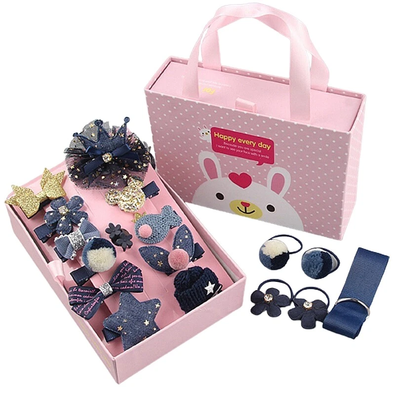 Features: brand new and high quality Children headpiece,hair ties and hairpin set,suitable for your different outfits and decorate your hairstyle. Elastic hair tie,stretchable and unfading,not easy to break,can be with you for a long for time. Various to choose bowknot flower glitter star and more, fix your hair well and not hurt your hair. Multi usages,wear the hair scrunchies attending party,daily wearing and more. Amazing gifts,sweet headwear with fine storage box,can be a wonderful gift for your girls and kids. Specifications: Material: Cloth Color:As Picture Shown Box Size: Approx. 17x5x12.5cm/1.18-1.96inch Package Includes: 18Pcs Headwear note: Please allow 1-2cm errors due to manual measurement, make sure that you do not mind before you order. Due to the difference between different monitors, the picture may not reflect the actual color of the item.