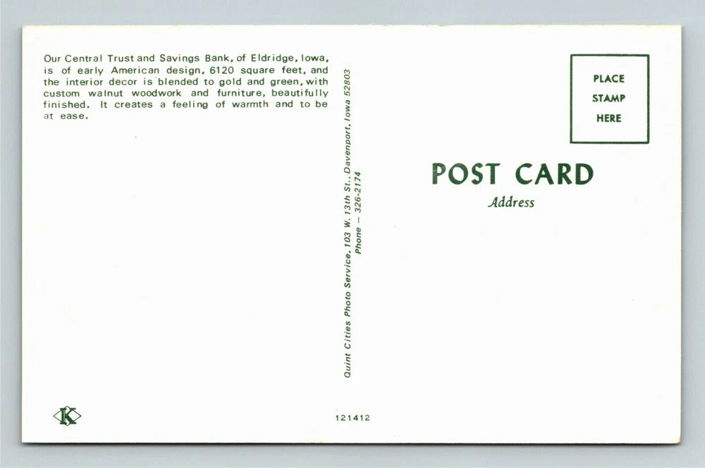 Eldridge IA-Iowa, Central Trust and Savings Bank, Vintage Postcard